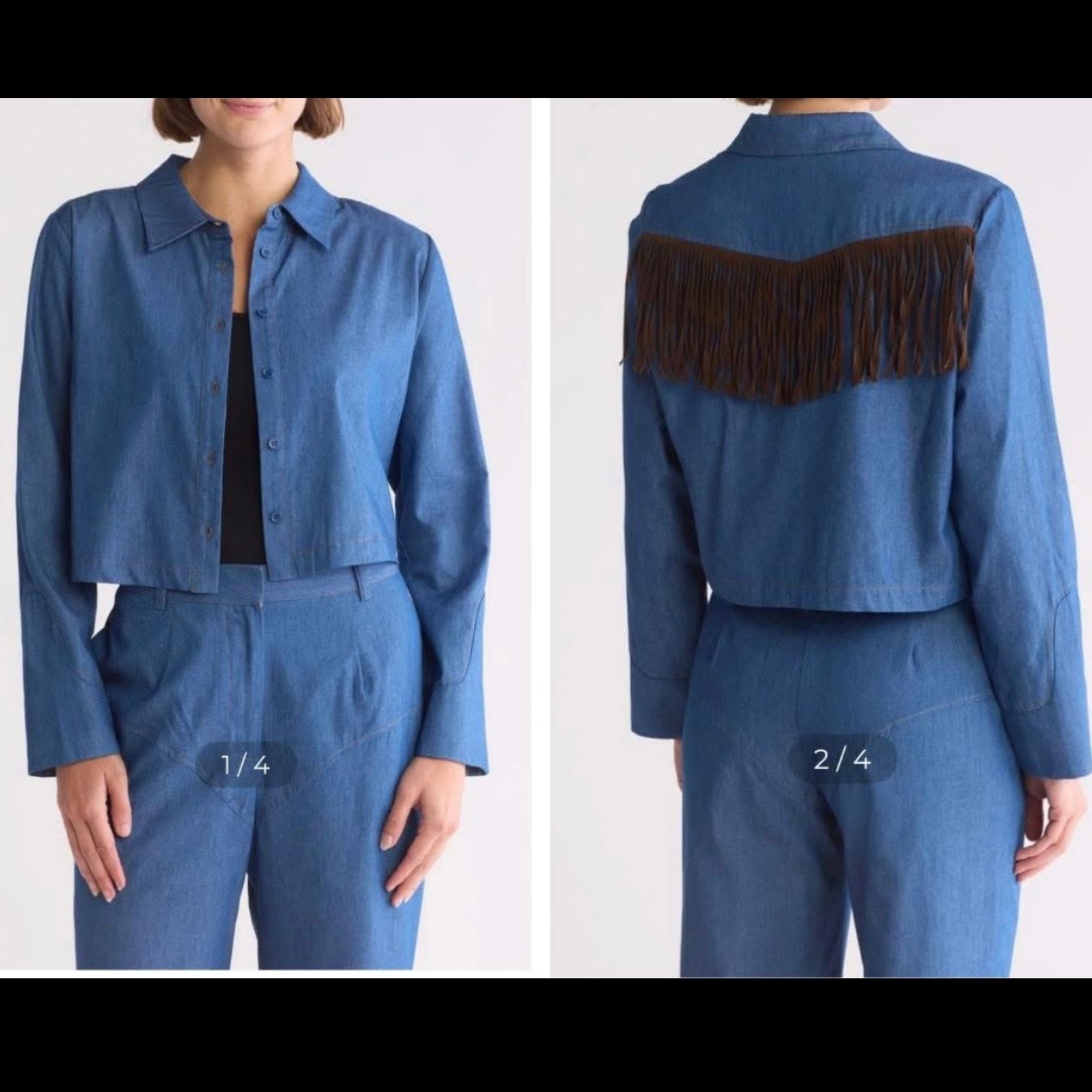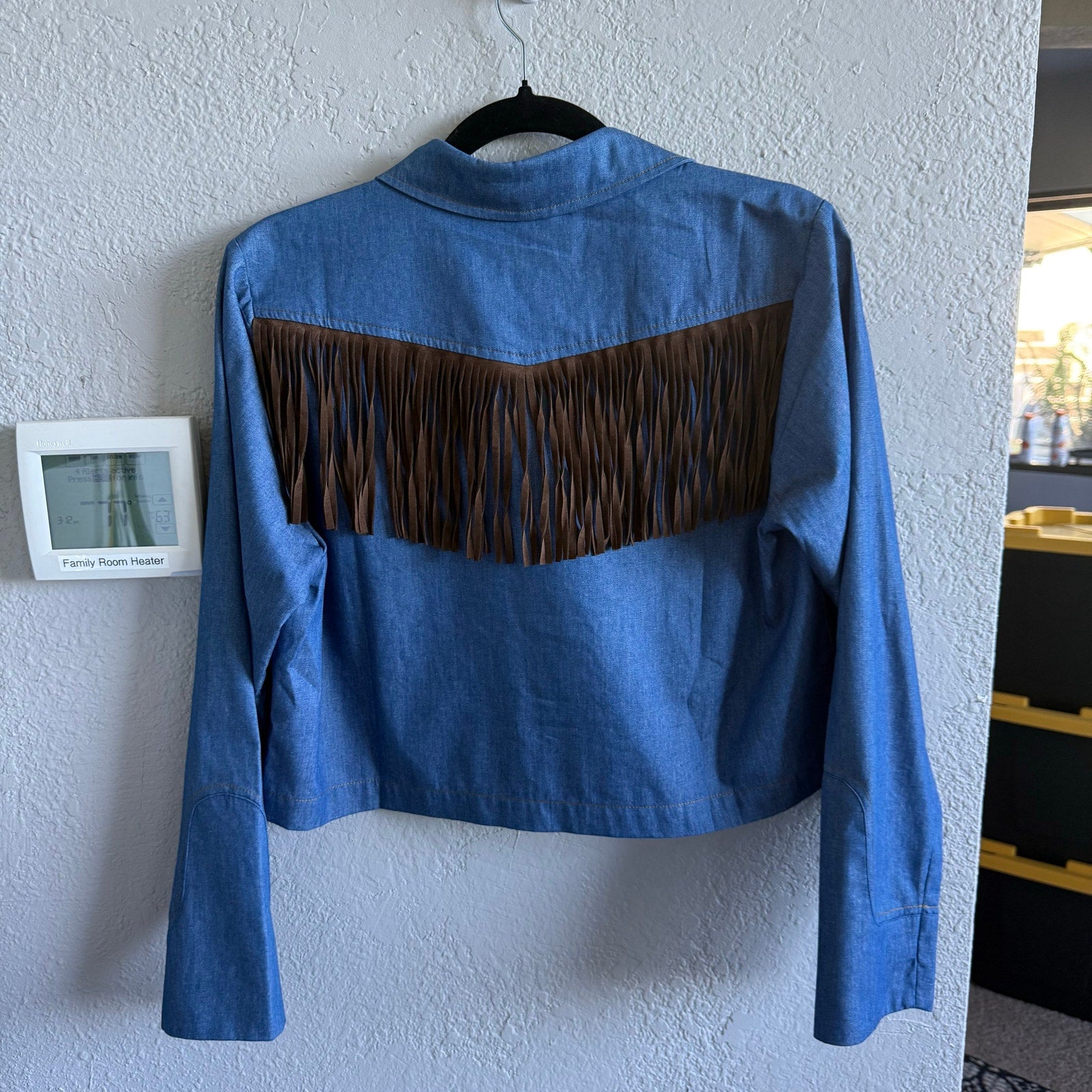 19 Cooper chambray cropped button drop with fringe on back - new with tags