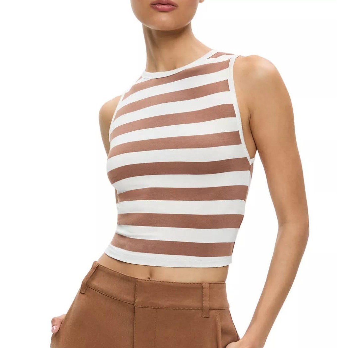 This fitted cropped tank is a cool and cute option for pairing with pencil skirts, high waisted shorts or really whatever pant you've currently got in rotation. The bold stripes add extra allure.