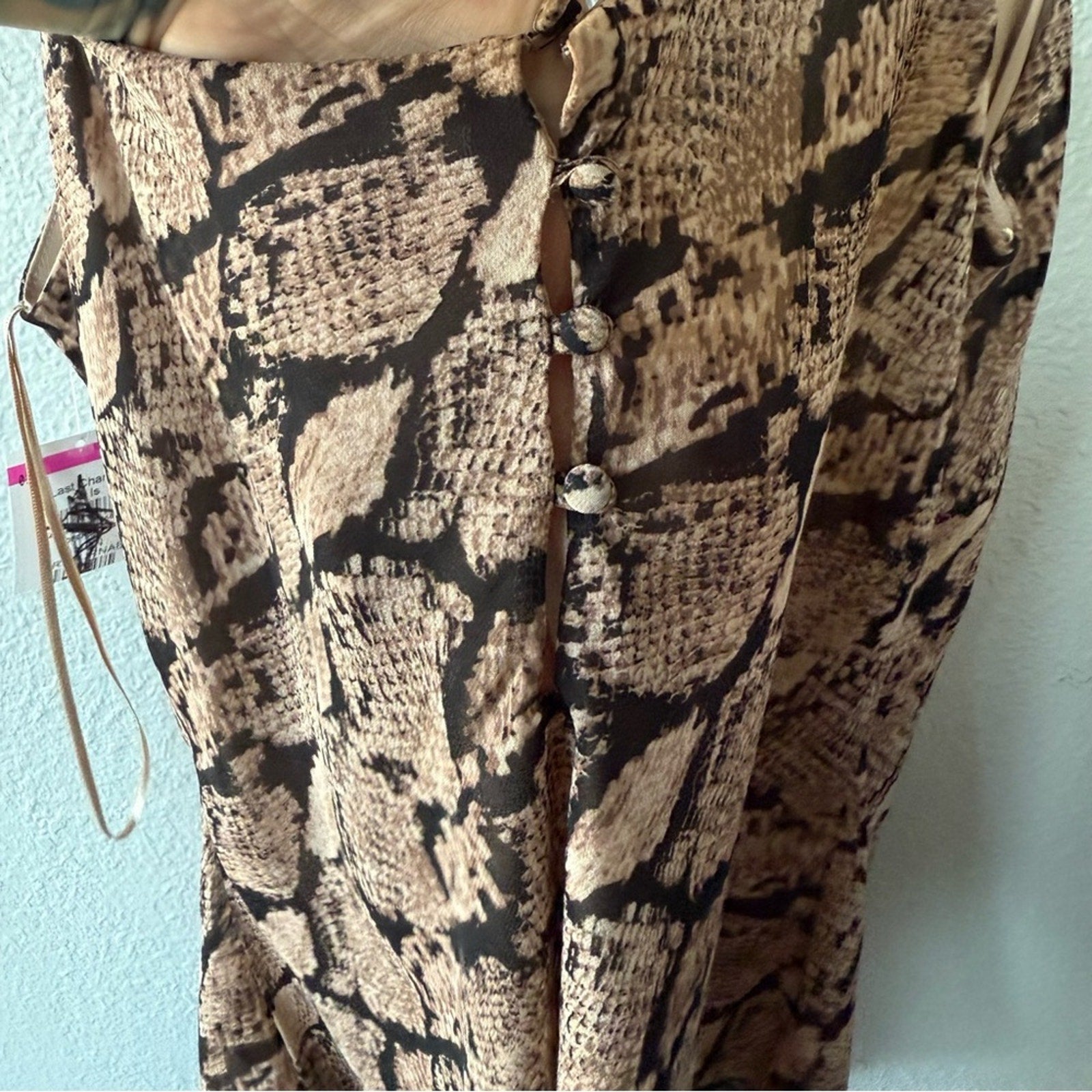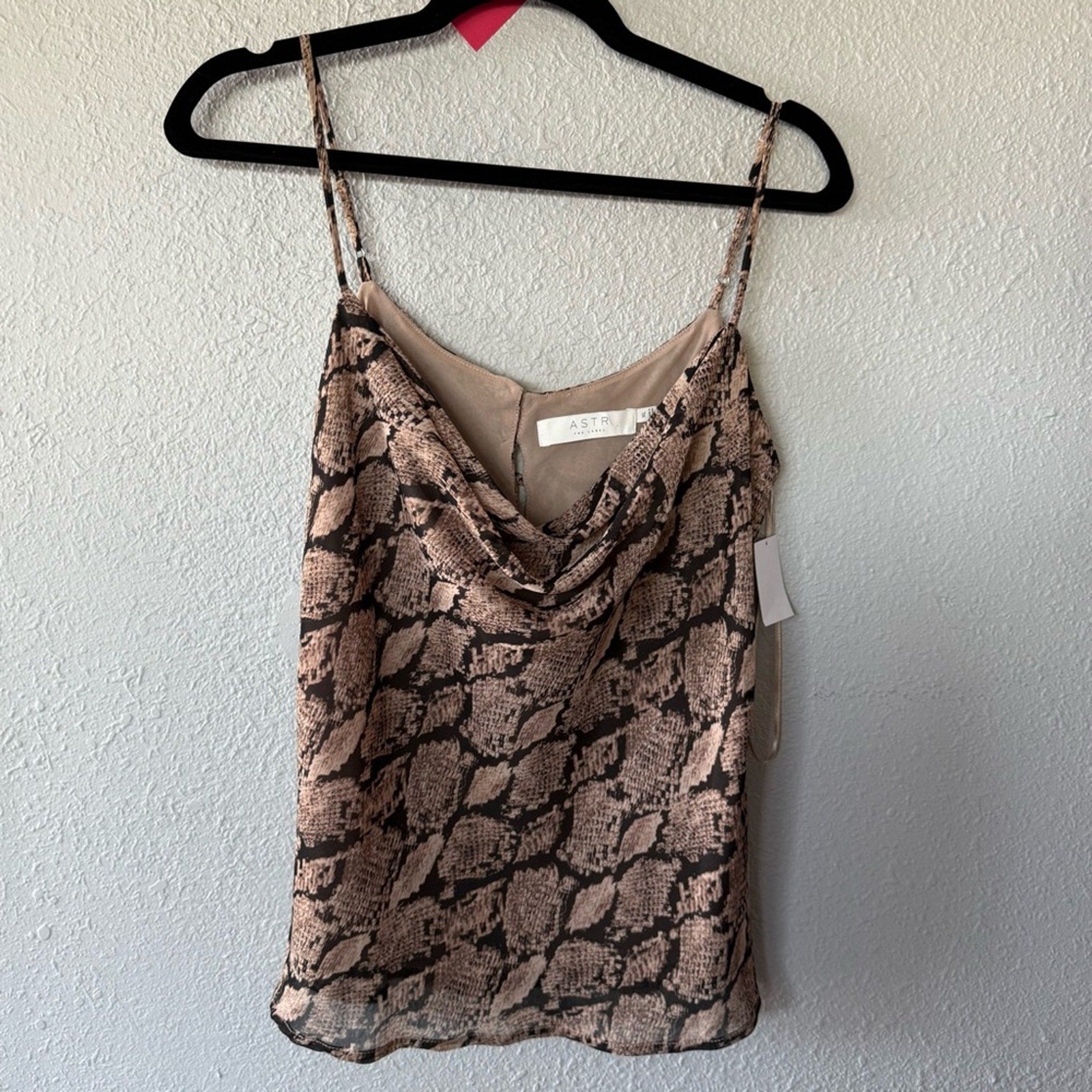 Elevate your style with the Women's Snake Print Cowl Neck Top. This chic brown top features a trendy snake print design, perfect for any occasion.