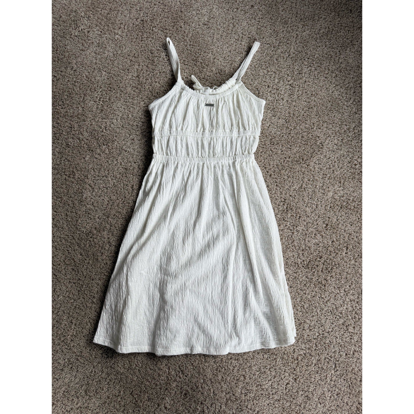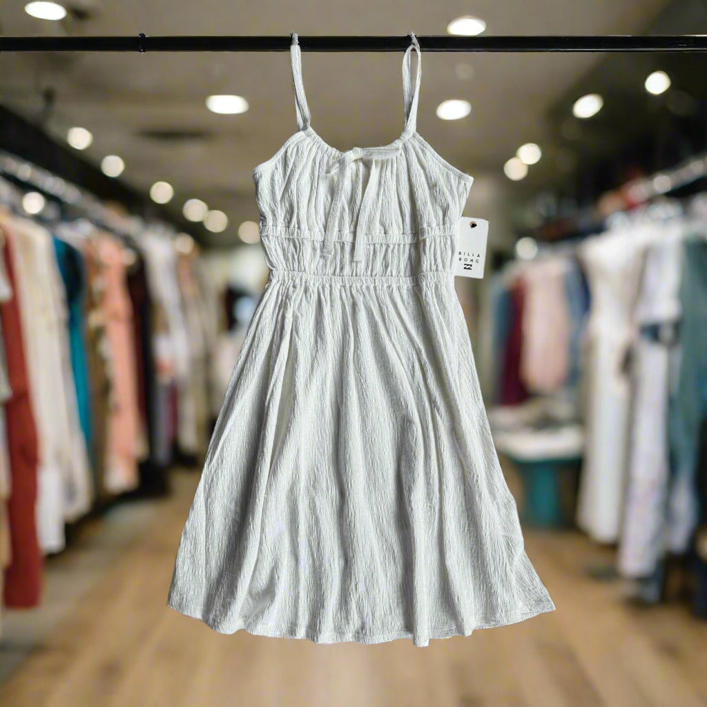 Crinkle jersey brings easy, breezy charm to this beach-ready minidress shaped by two rows of elastic at the bodice.