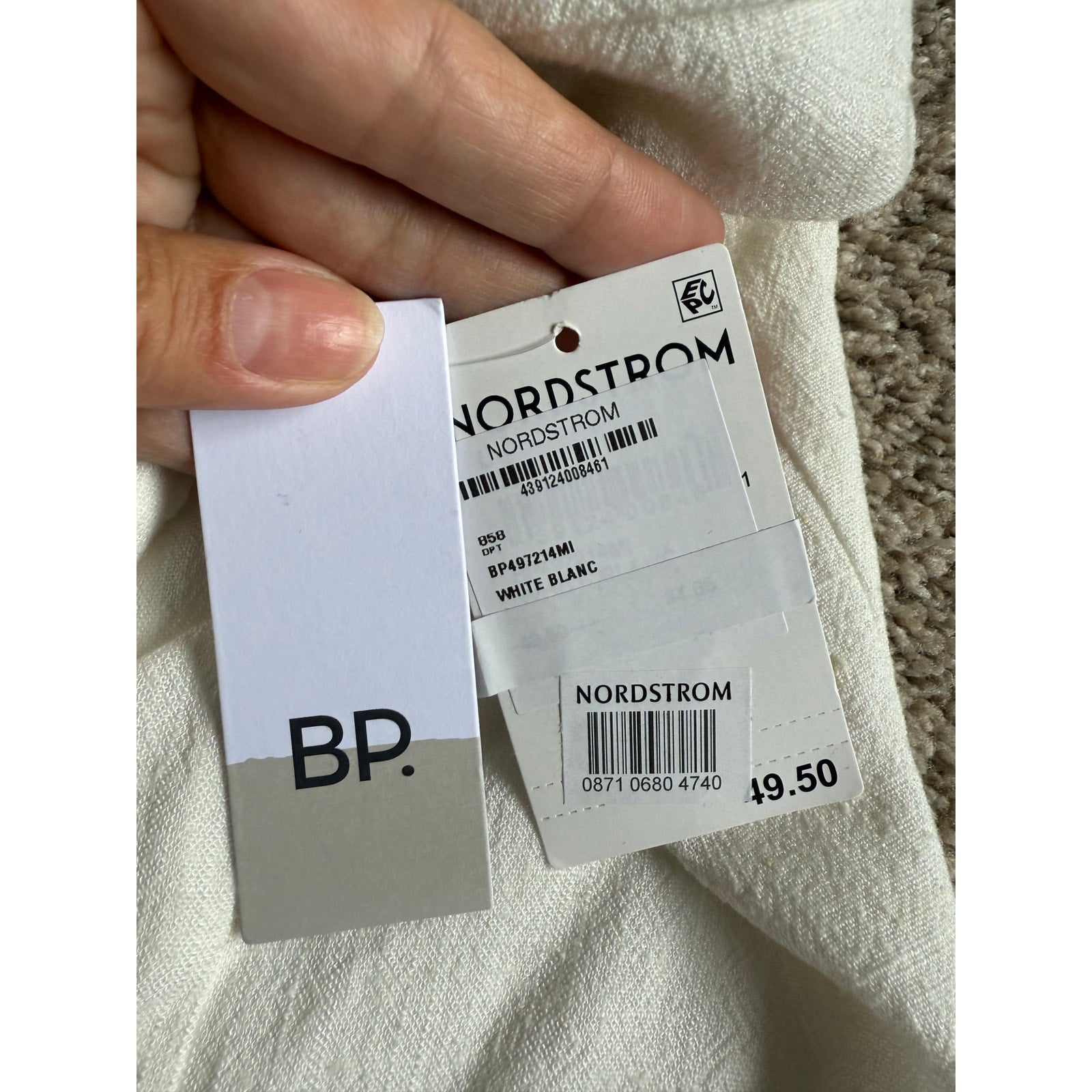 Nordstrom BP brand tube style strapless white dress. Rayon and linen luxurious feeling fabric. Has a sticky feeling liner in bust area to keep it up. I feel like the stress would be perfect to wear to a bachelorette party or bridal shower or bachelorette party. Wedding. Creamy off-white color. MSRP $49.50