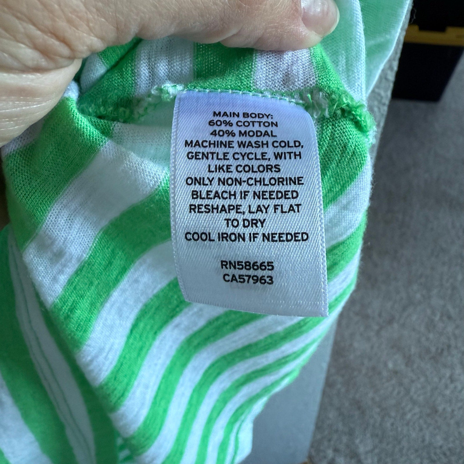 Green and white striped long tank 60% cotton 40% modal