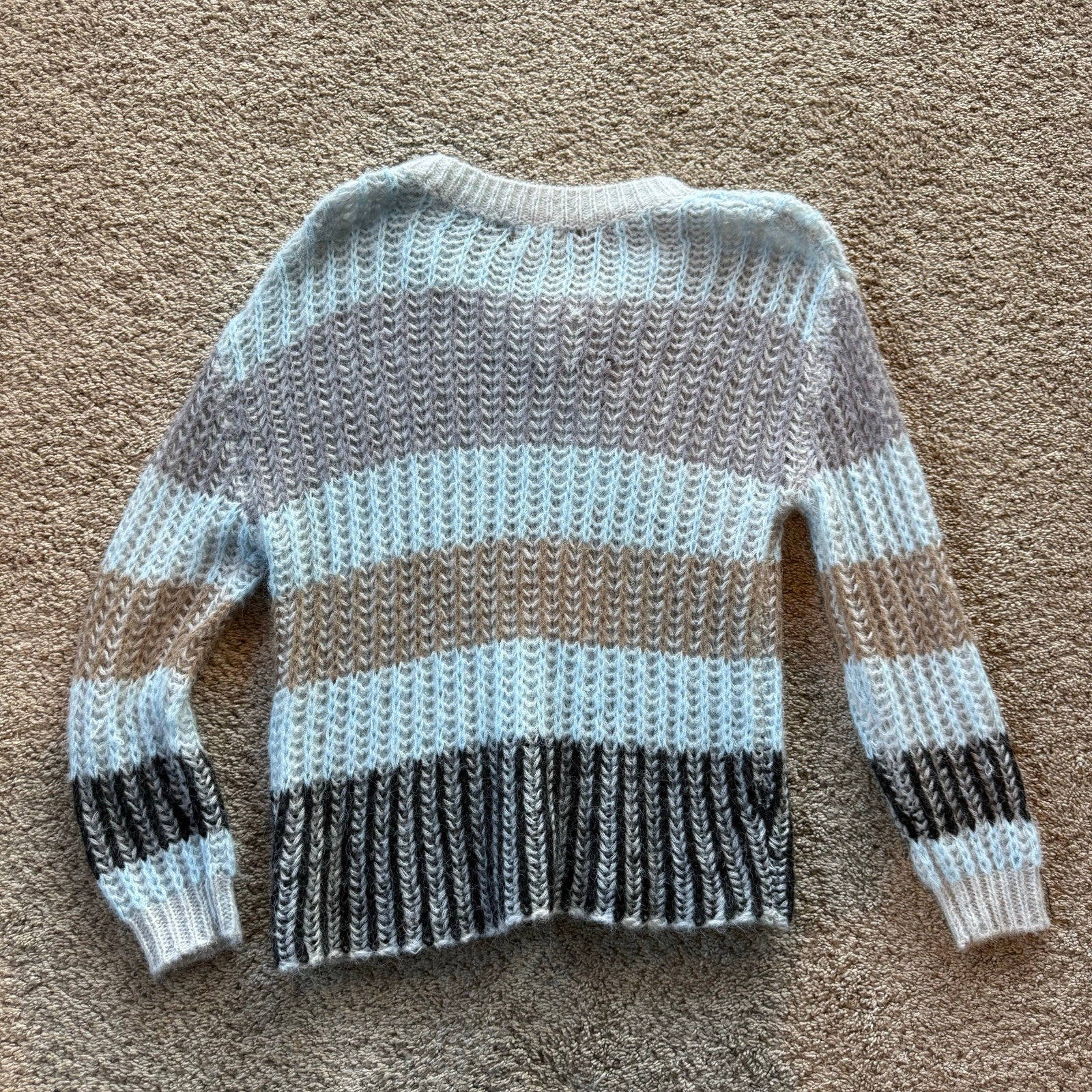 Experience the perfect blend of quality and style with the Democracy Striped Sweater - XS. Made with a combination of 49% nylon, 22% polyester, 18% acrylic, and 11% wool, this v-neck sweater is perfect for any occasion. NWOT