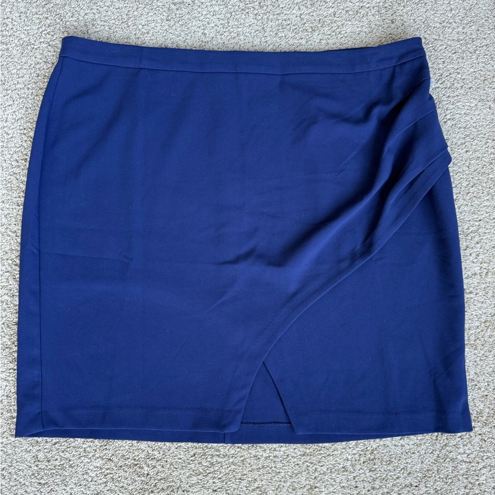 This elegant navy blue skirt is perfect for any occasion. Its sleek design offers a sophisticated look. New without tags, never worn or washed.