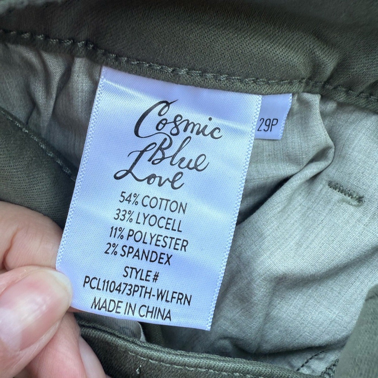These green straight leg pants deliver a practical yet fashionable choice for daily outfits. Made from a medium-weight cotton blend, they combine comfort with long-lasting wear. The flat front cut adds a clean, contemporary silhouette. Cosmic Blue Love Green Straight Leg Pants - Size 29
