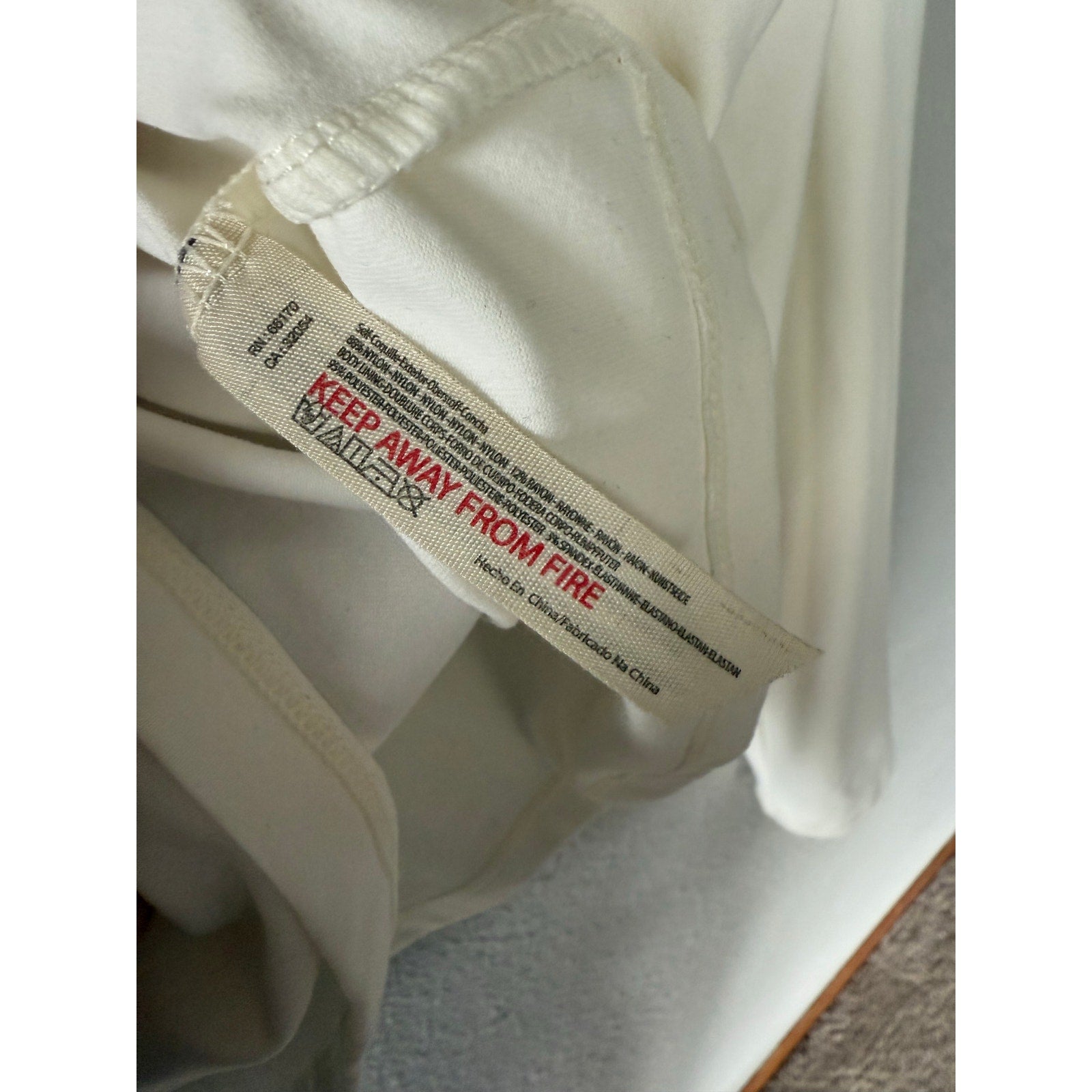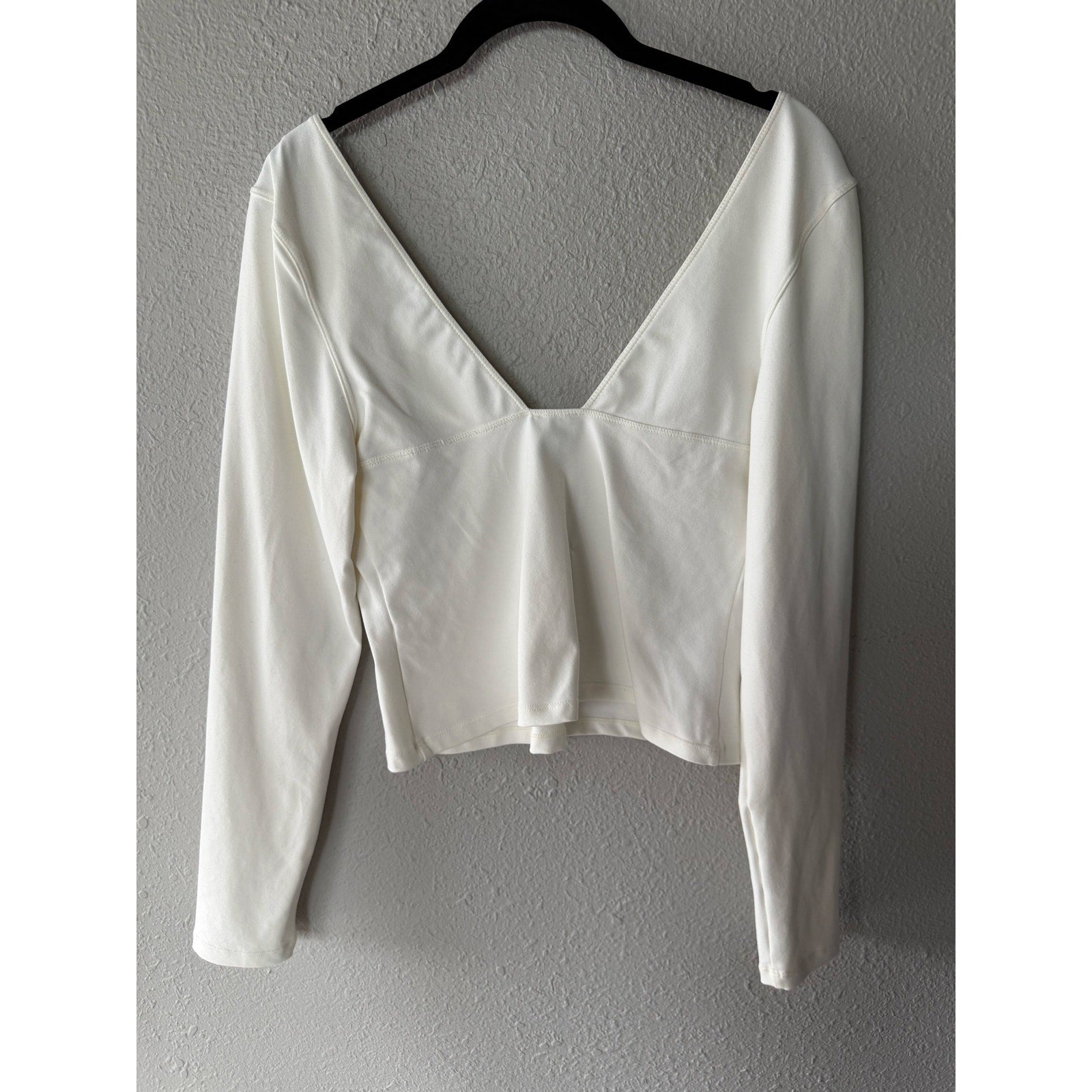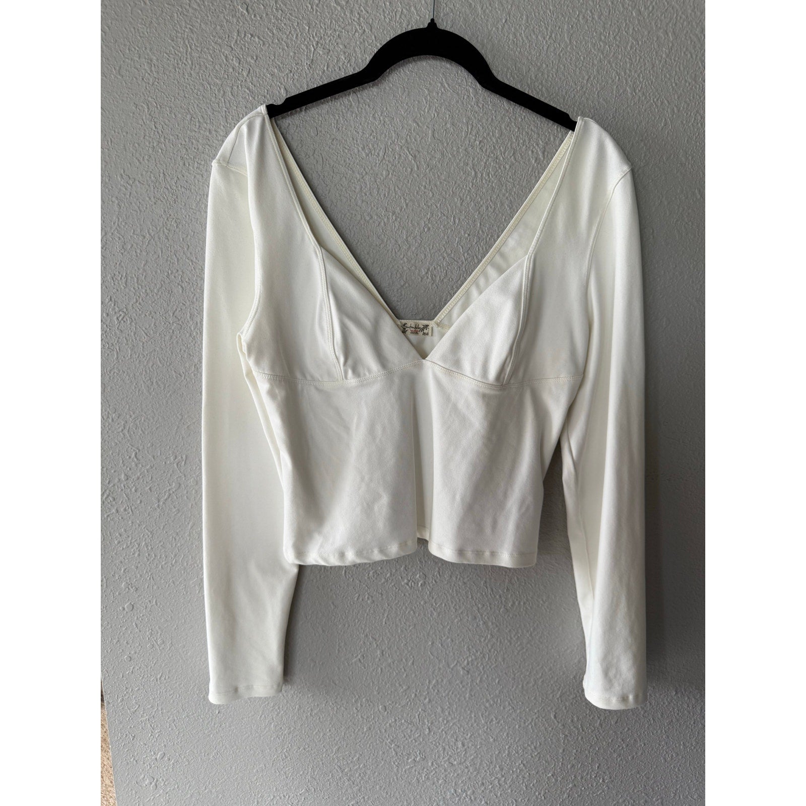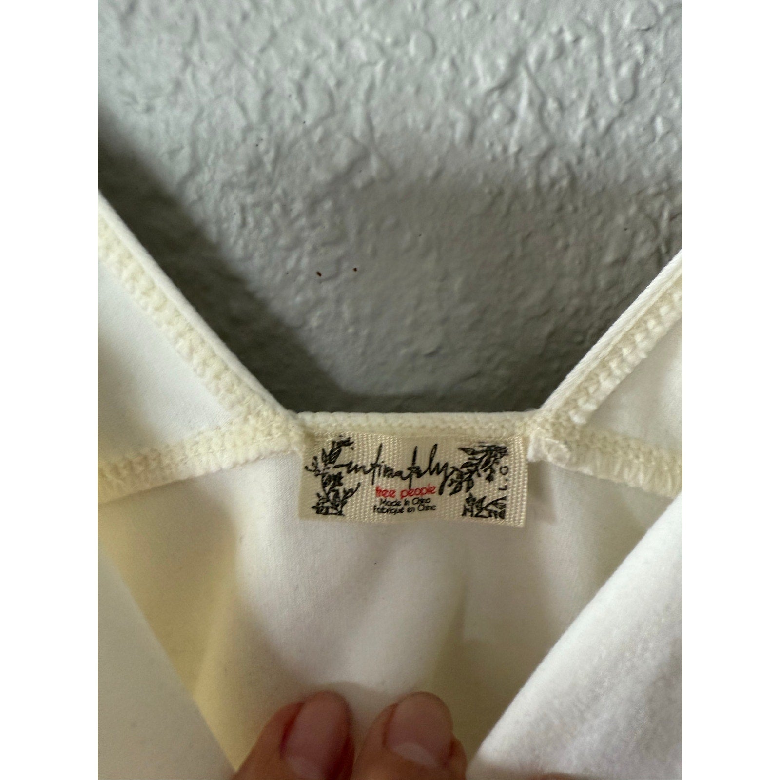 This top features a deep V neckline both front and back, crafted from a highly stretchy fabric with a soft, dense texture reminiscent of butter. The color is a subtle off-white, offering a refined alternative to pure white. Intimately Free People Top - Large - White