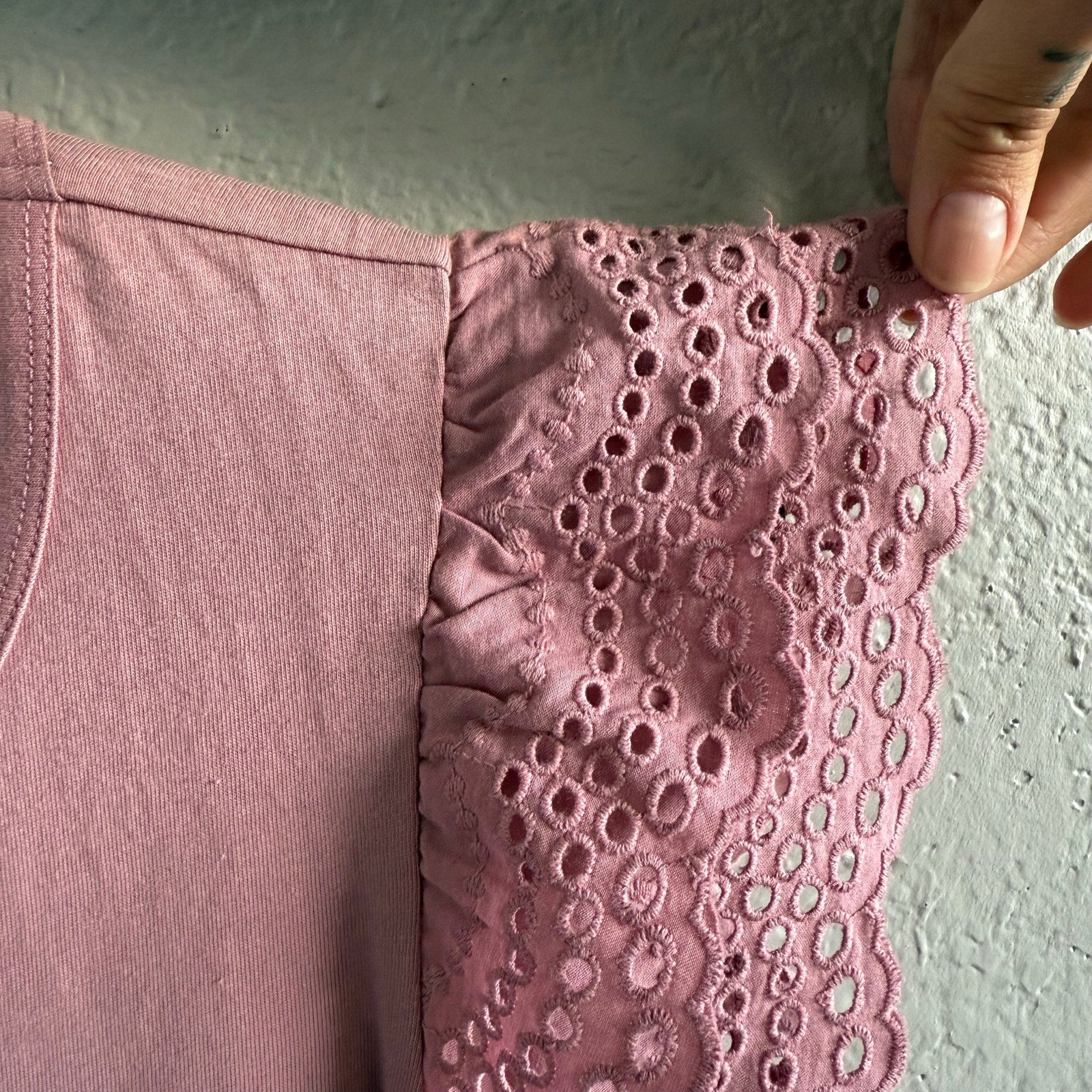 Joe's Women's Top Size large Eyelet Layered Flutter Sleeve Blouse Rose MSRP $148