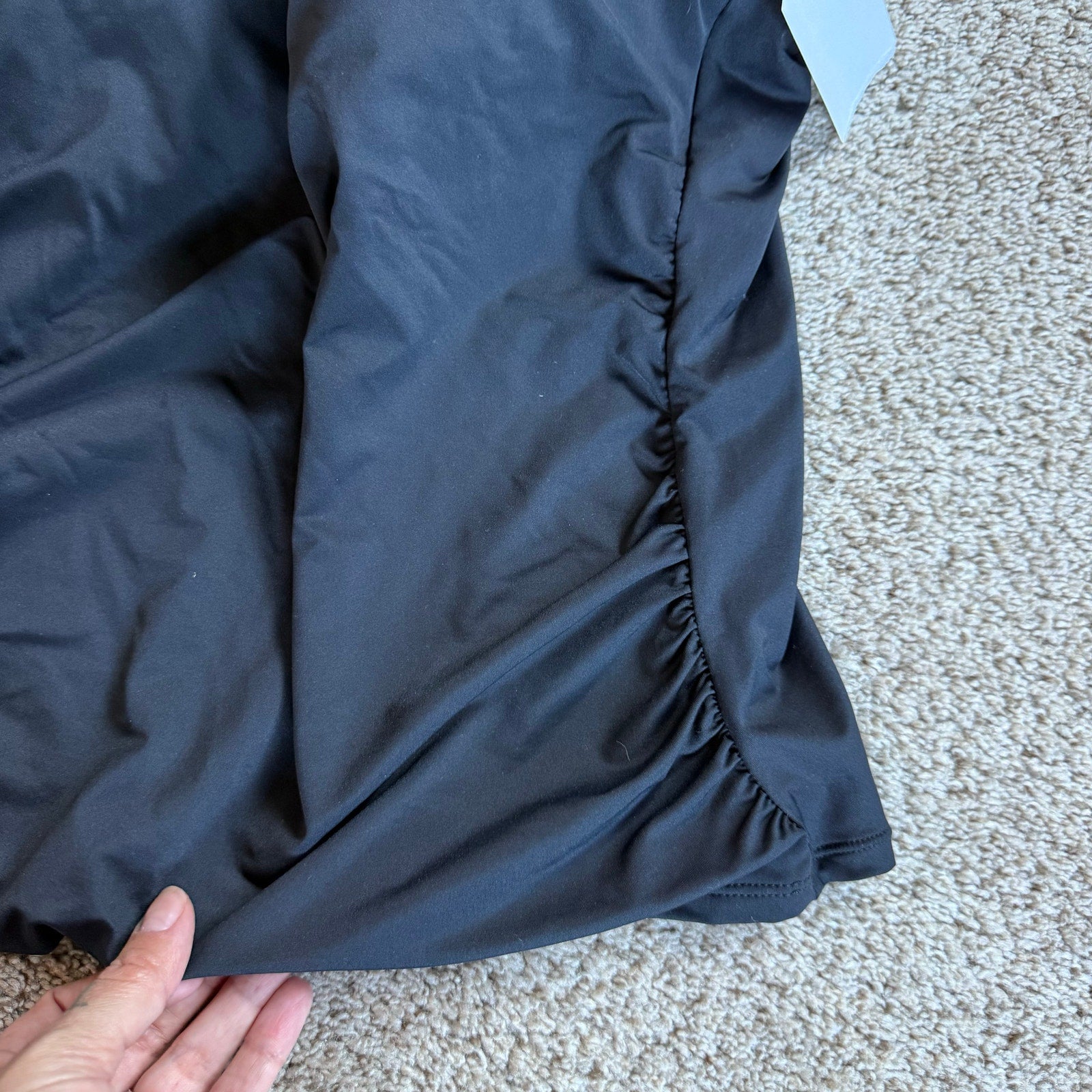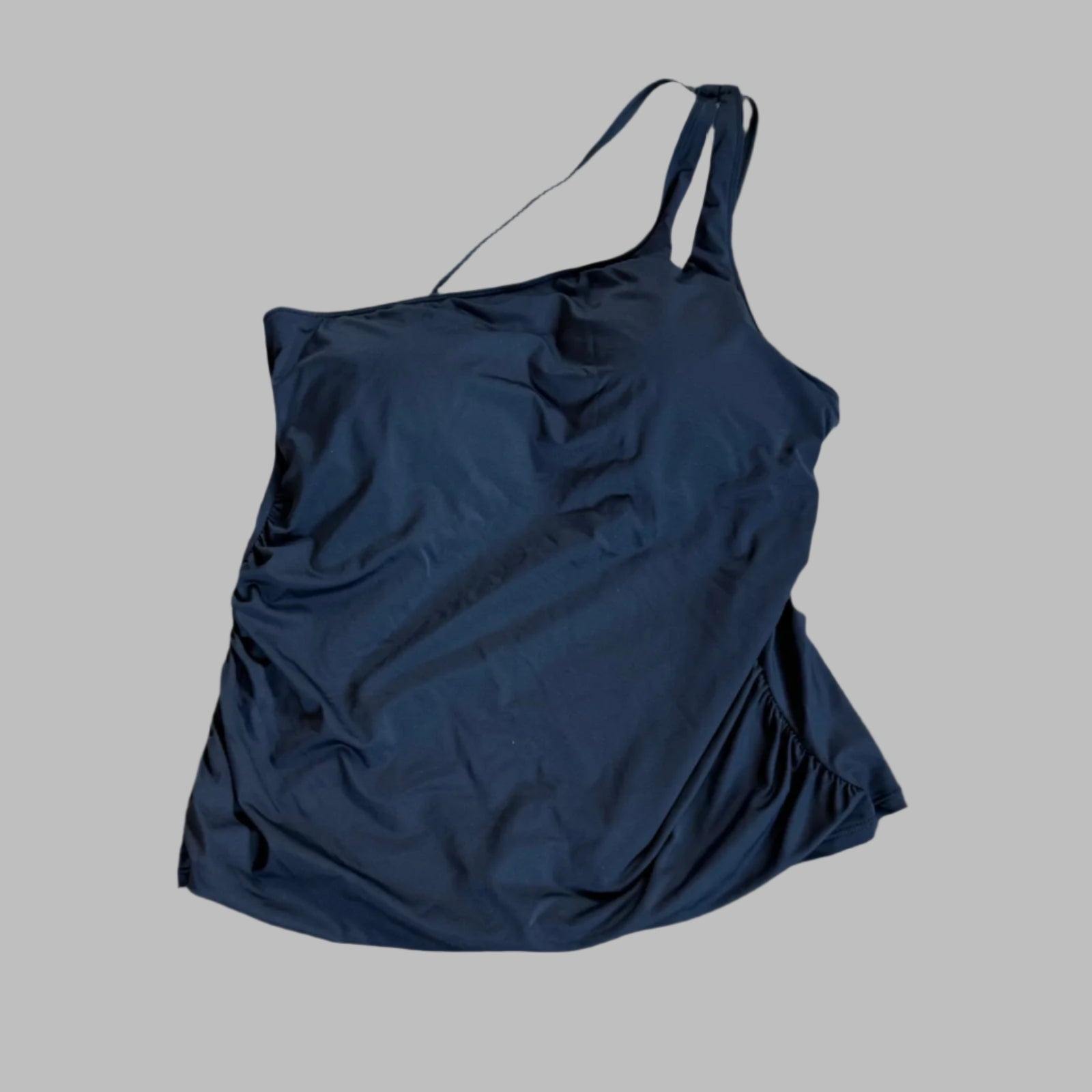 Feel every inch a goddess in this tankini fashioned with the neckline of the moment, gathered sides and a skirted hem.