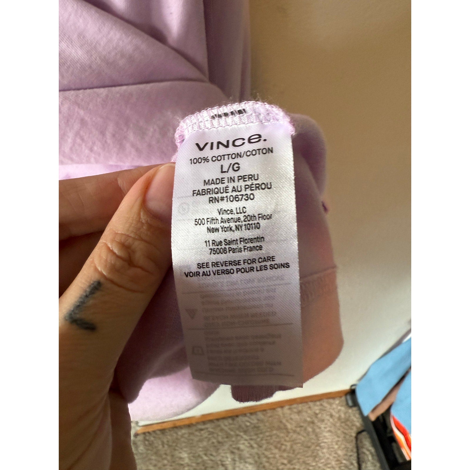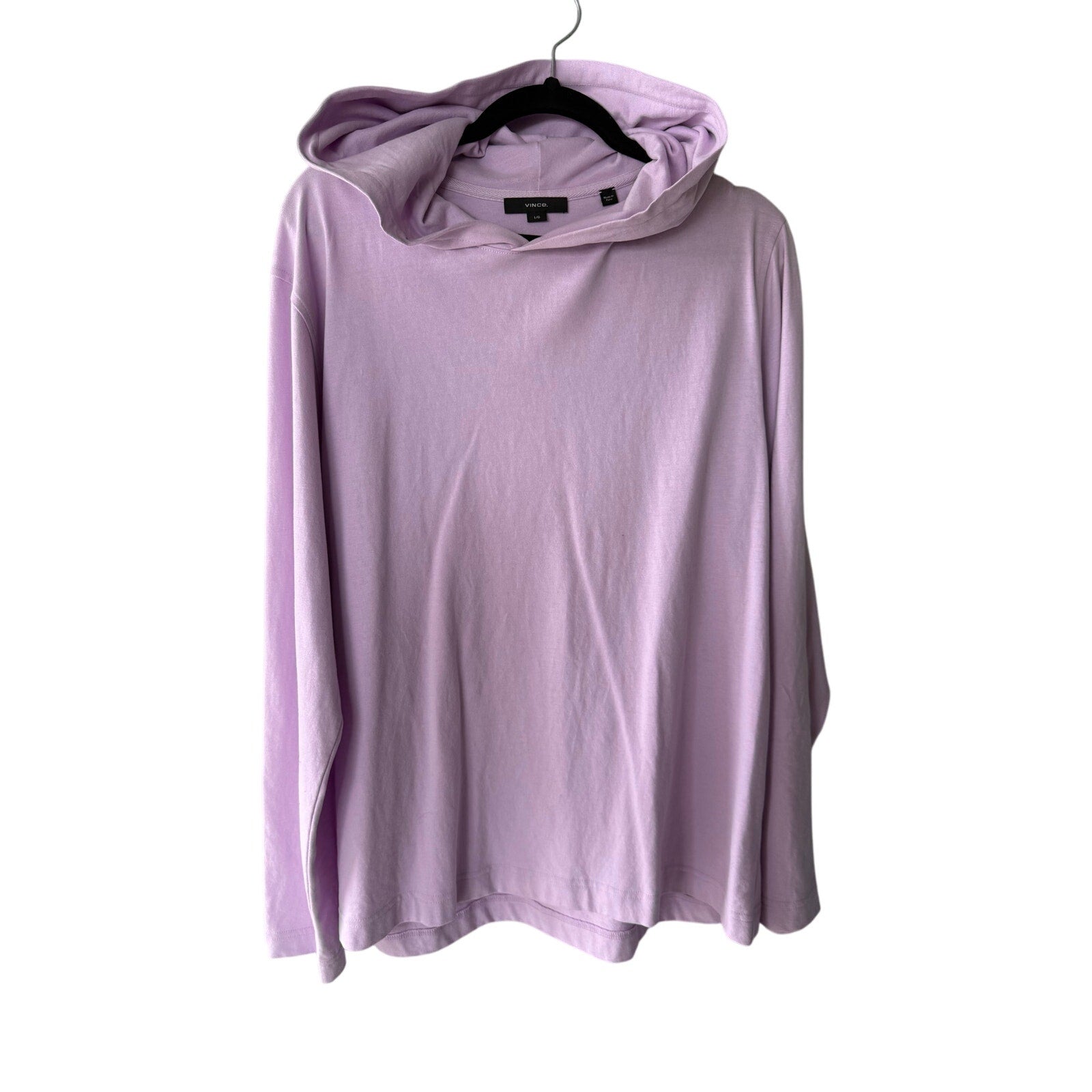 100% cotton pretty light purple lilac lavender color hoodie. Not regular sweatshirt material. It’s a thinner light weigh material that’s super soft. Feels high end. I am listing this as a women’s top but I am not sure if it’s it’s men’s or women’s. Neckline to him is 25 inches long and pit to pit is 24 inches long