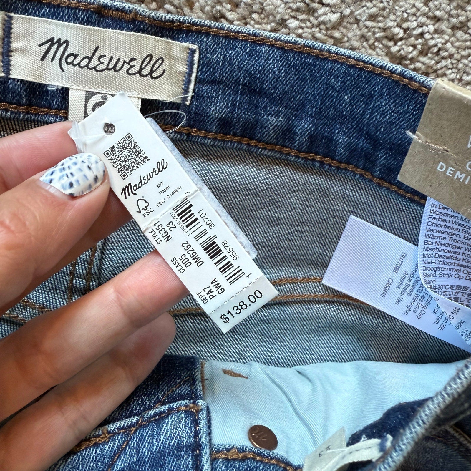 New with tags, originally priced at $138. Size 23. Madewell. Features a cropped mini-flare silhouette that complements both flats and heels. Crafted from our renowned stretch denim that offers firm support while maintaining an authentic, rugged appearance. Madewell Cali Demi Boot Jeans – Size 23.