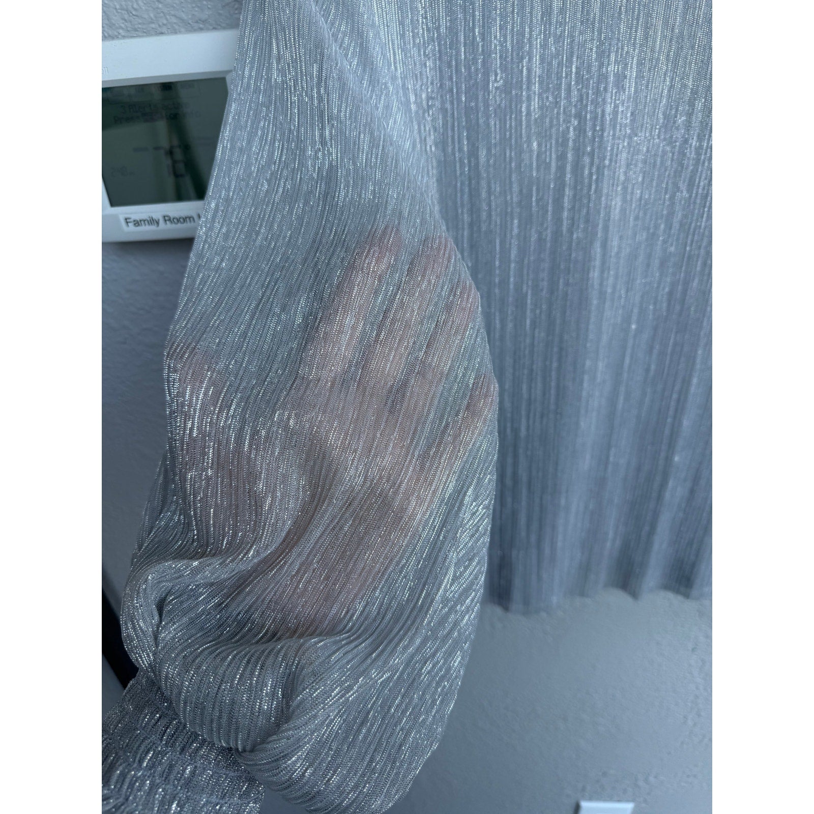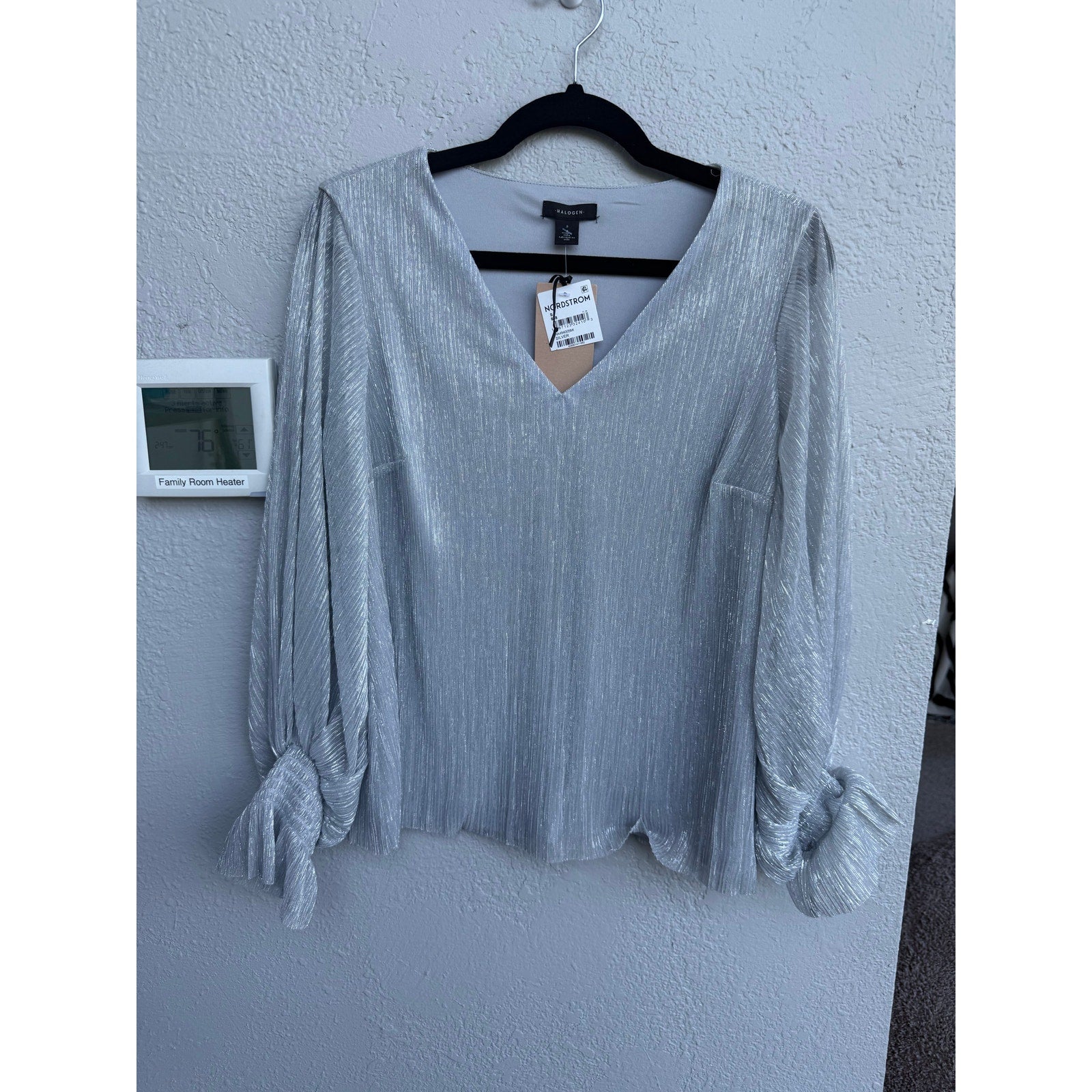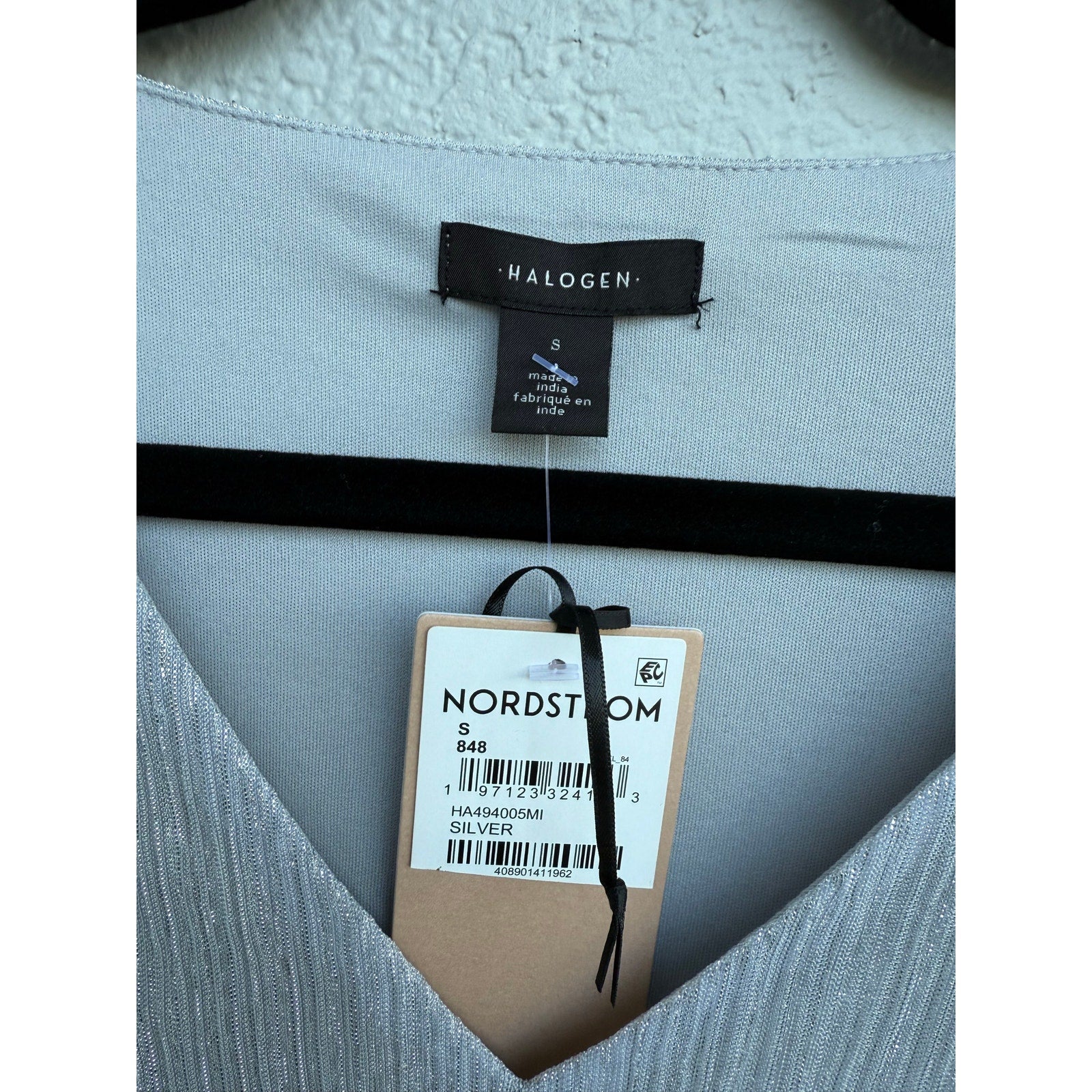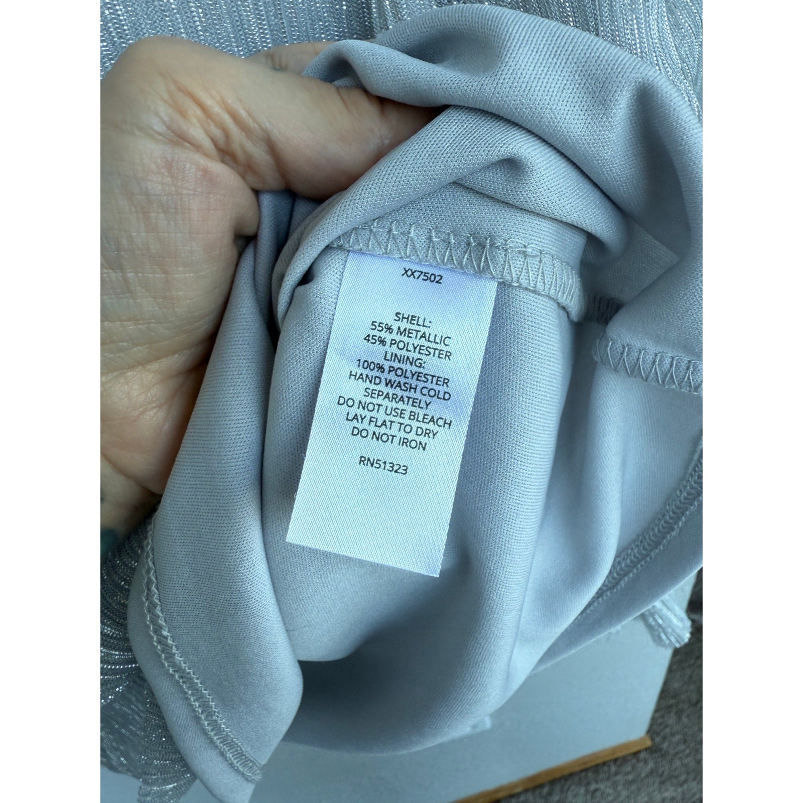 New with tags, halogen brand, metallic lined but the sleeves are sheer, has stretch in size small.