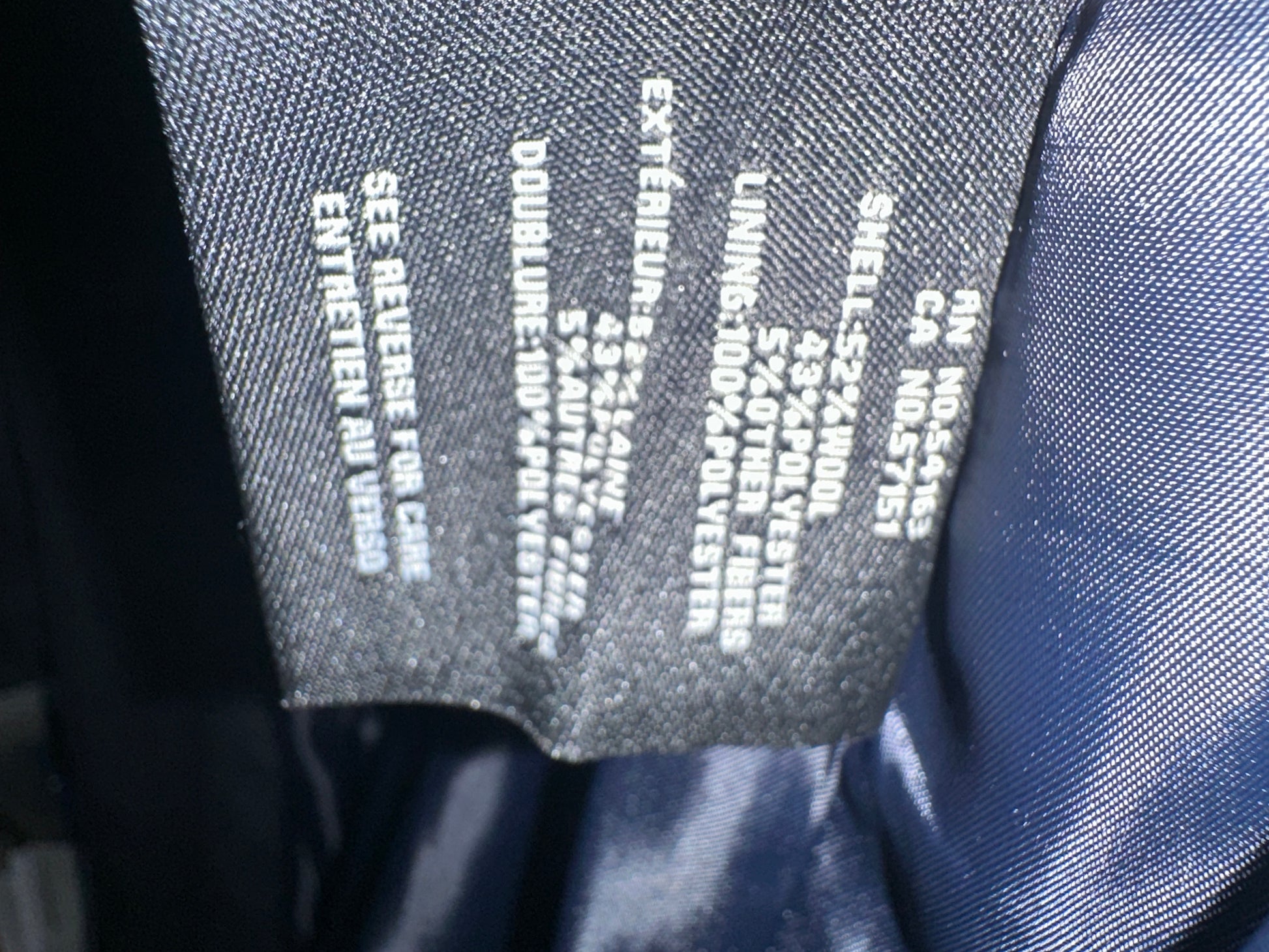 Elevate your winter wardrobe with Cole Haan's Navy Belted Wool Blend Wrap Coat! The oversized wing collar adds a touch of elegance while the snap button closure and side welt pockets offer convenience. With a removable tie belt for a tailored silhouette, this coat is a must-have for staying warm and stylish. Imported and dry clean only. Please note: This item runs large.