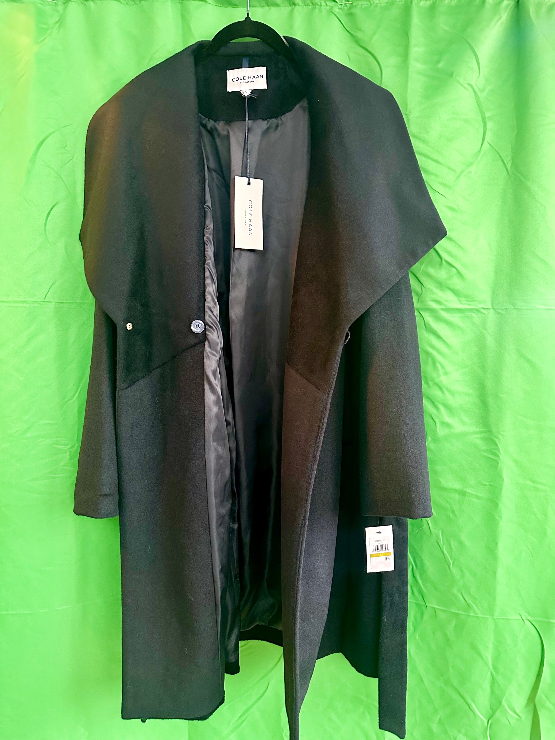 Navy Belted Wool Blend Wrap Coat by Cole Haan - Size 14