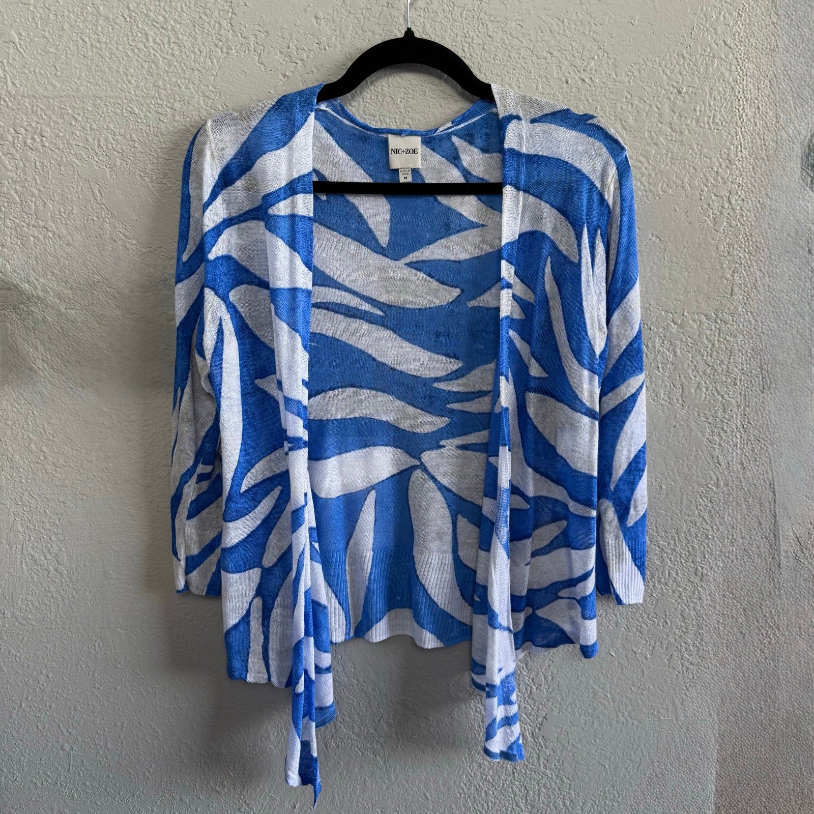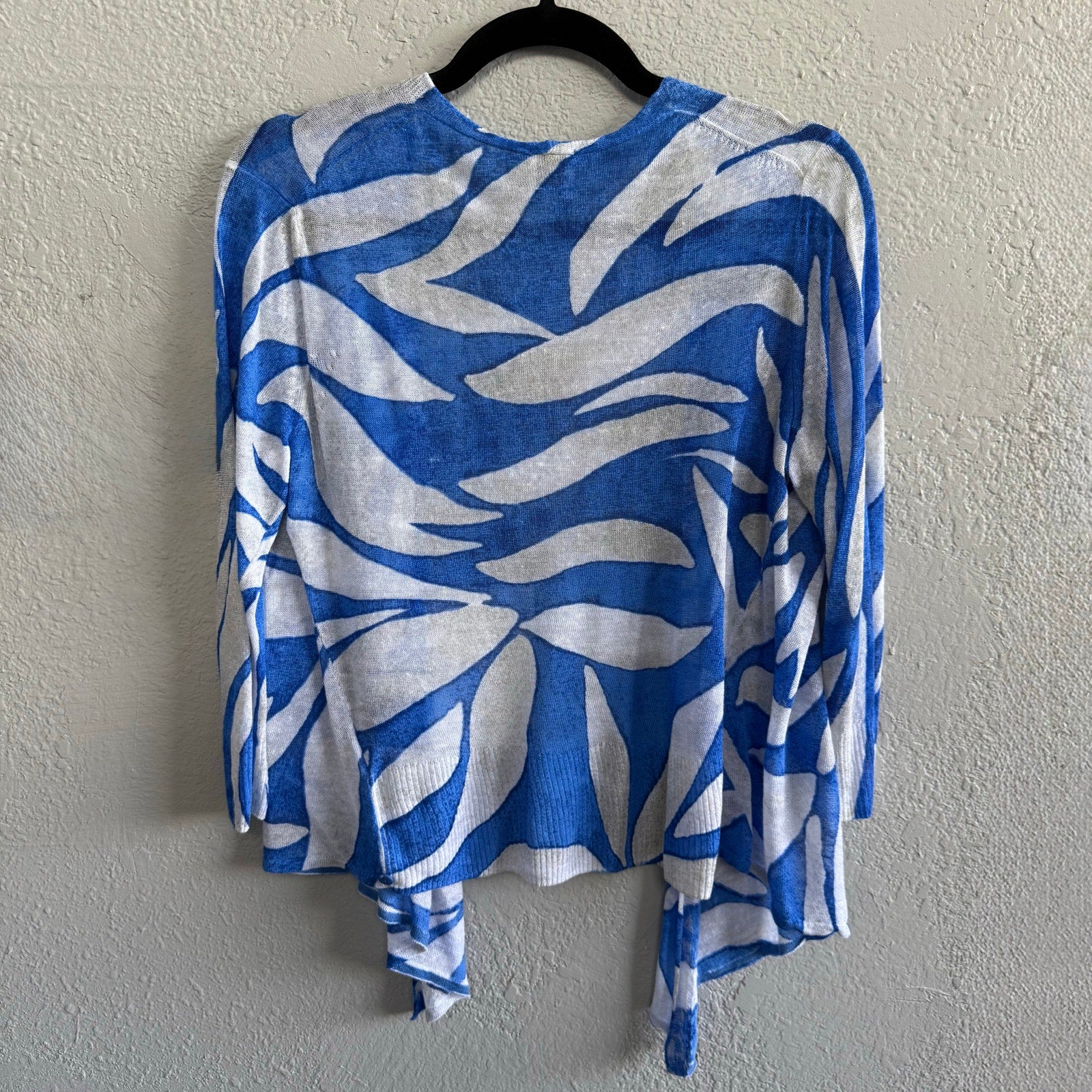 Enjoy exceptional versatility with a printed linen-blend cardigan cleverly designed to be worn four different ways. Leave the front draped open, knot or twist the hem ties together or crisscross the front panels and anchor to the side buttons for a charming wrapped look. 60% linen, 40% viscose. MSRP $158.