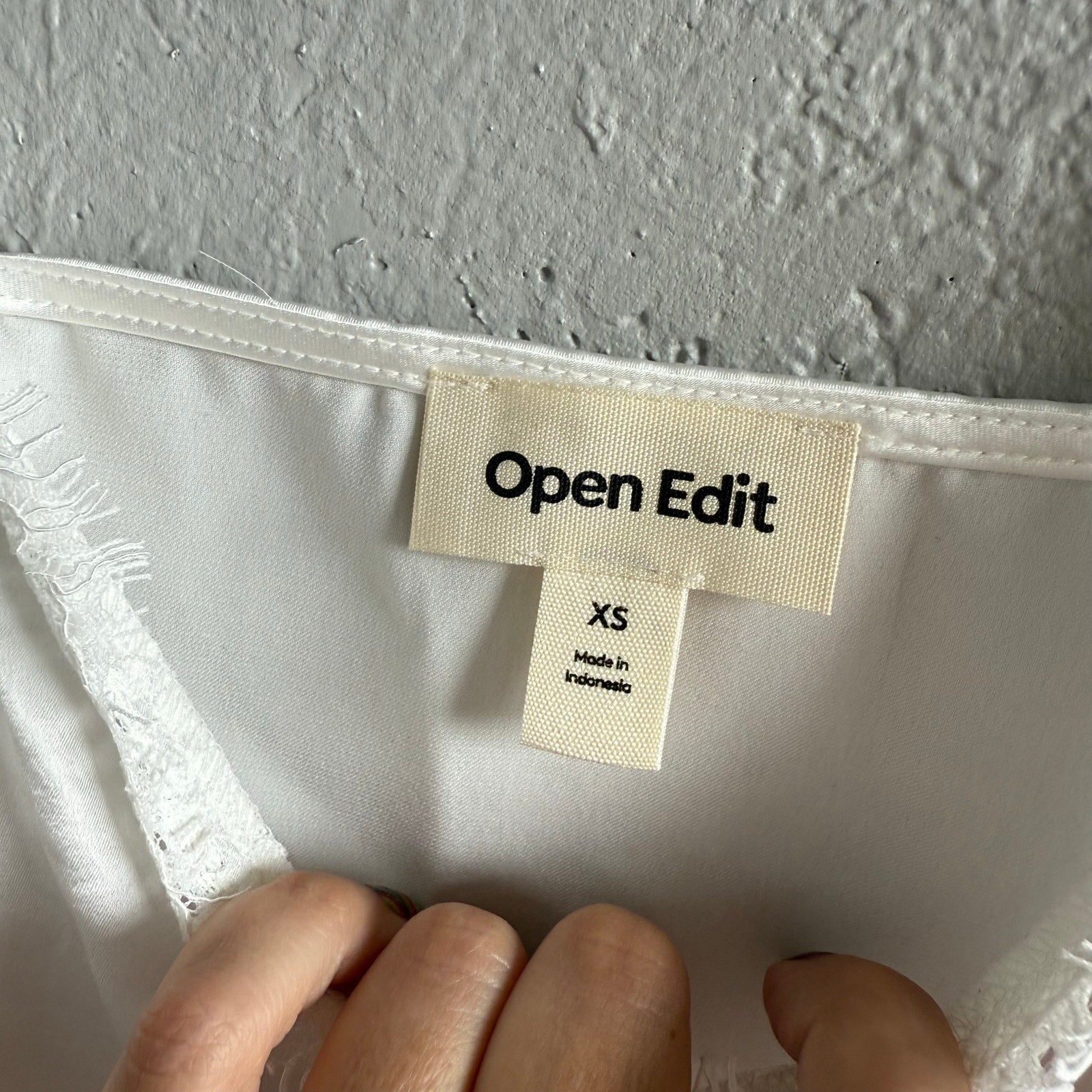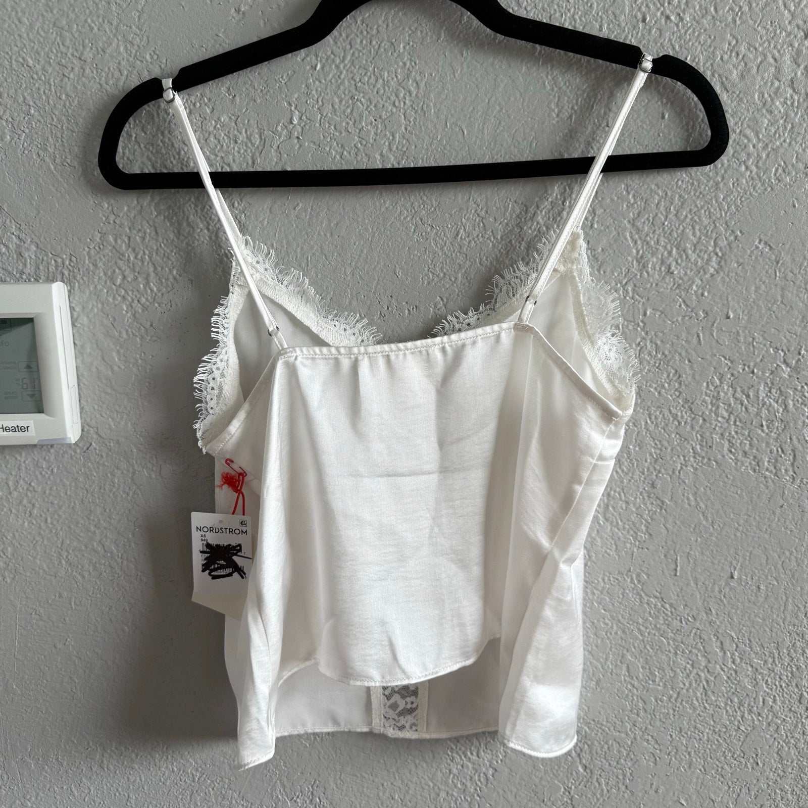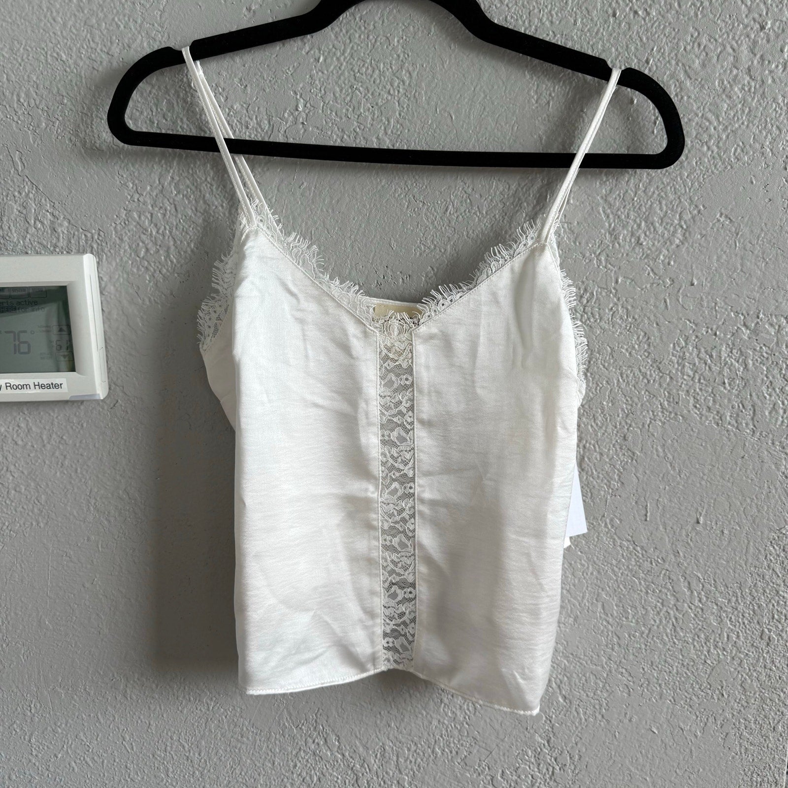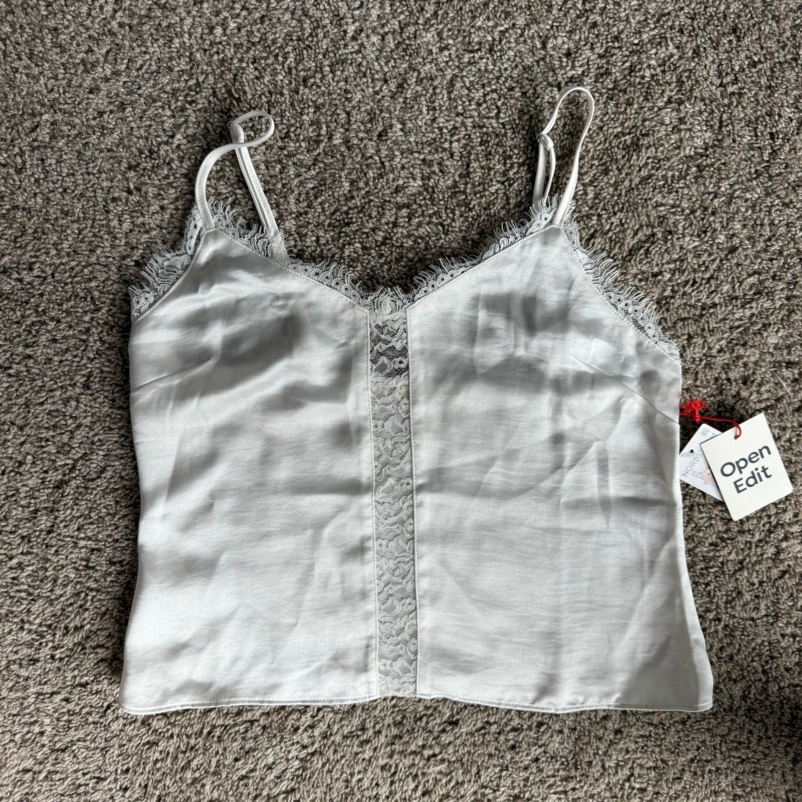 This Open Edit tank is so cute! Satin Lake material, new with tags, adjustable straps, lace details. size XS