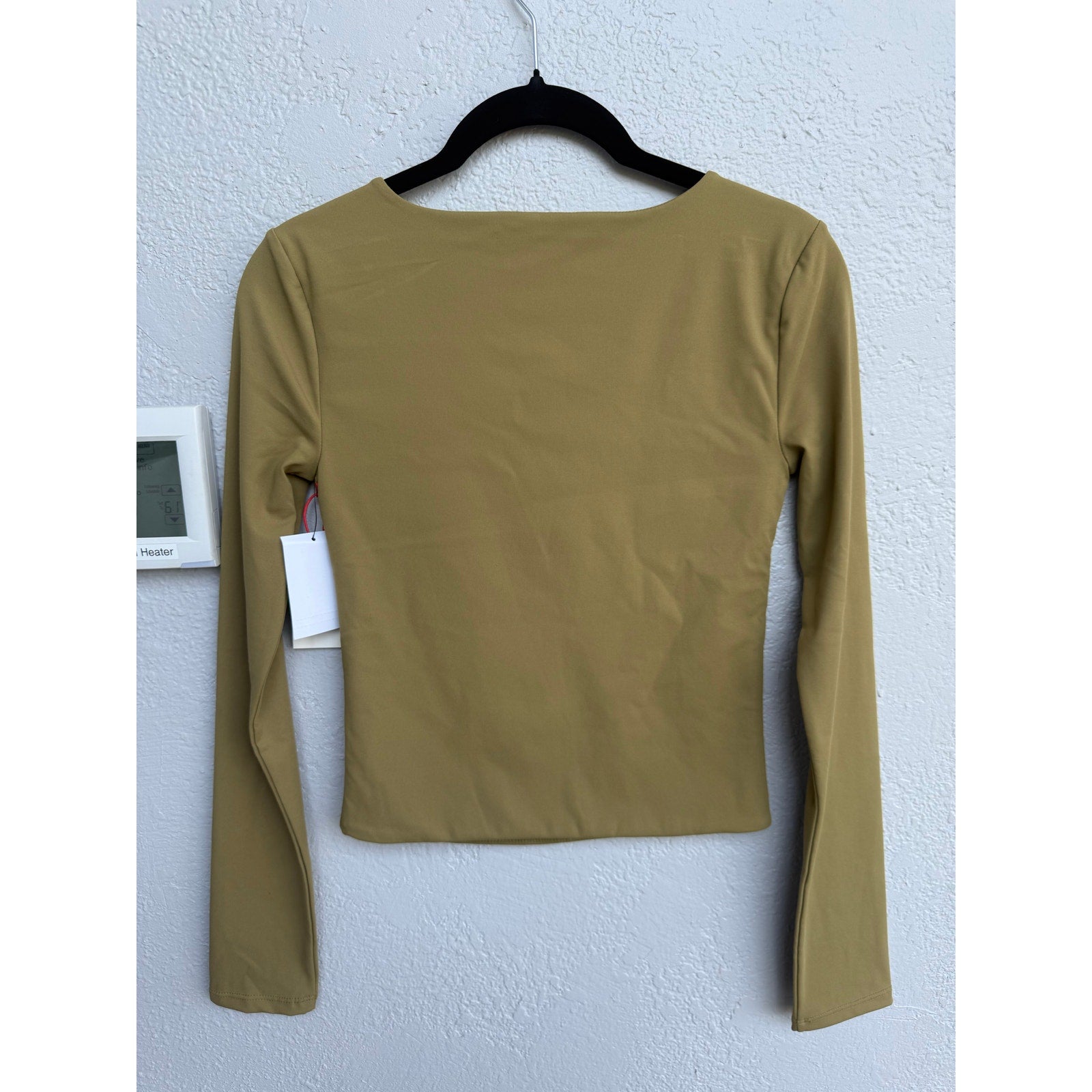 This XS scoop-neck top, new with tags, features a soft and stretchy fabric blend of 75% nylon and 25% spandex that hugs your silhouette. Designed for seamless layering, it is perfect for transitioning smoothly from professional settings to evening occasions.
