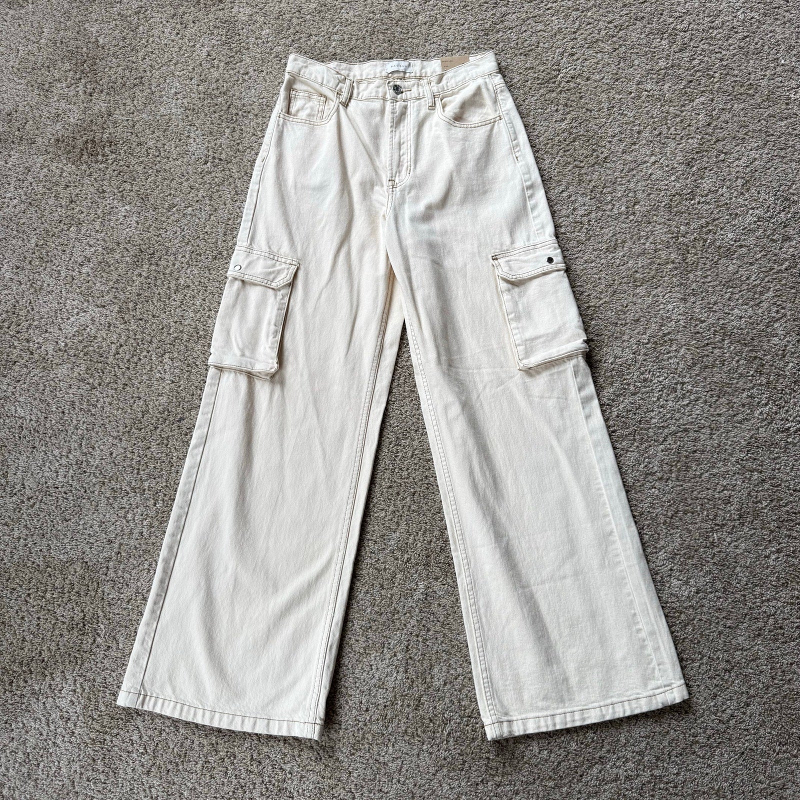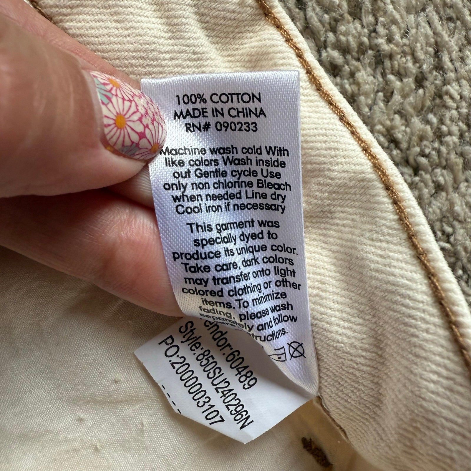 Measurements laying flat: waist 15” Front Rise 11.5 Inseam 32”