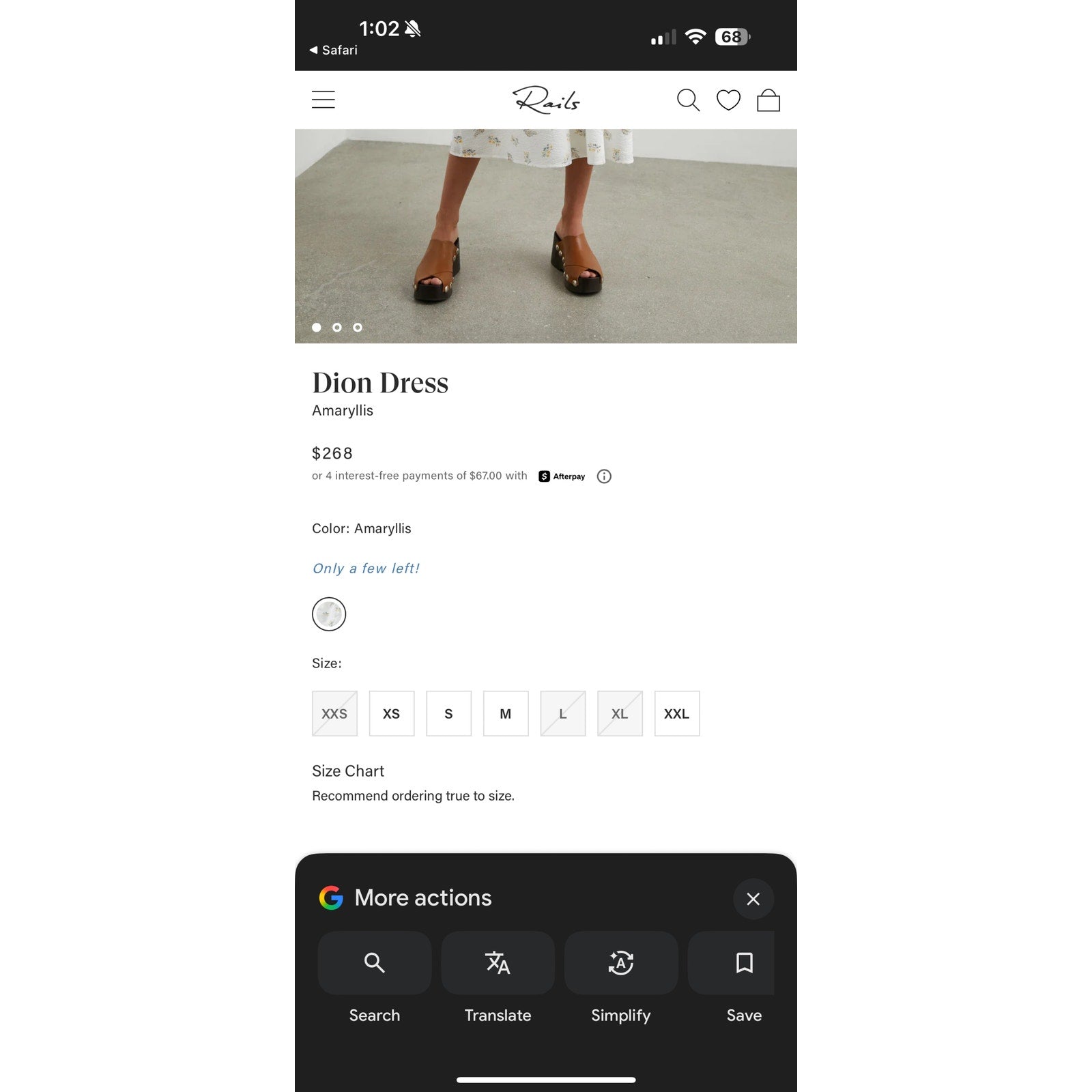 We have this dress in XS and medium. It’s perfect for a summer wedding!! It’s currently selling on the Rails website for $268