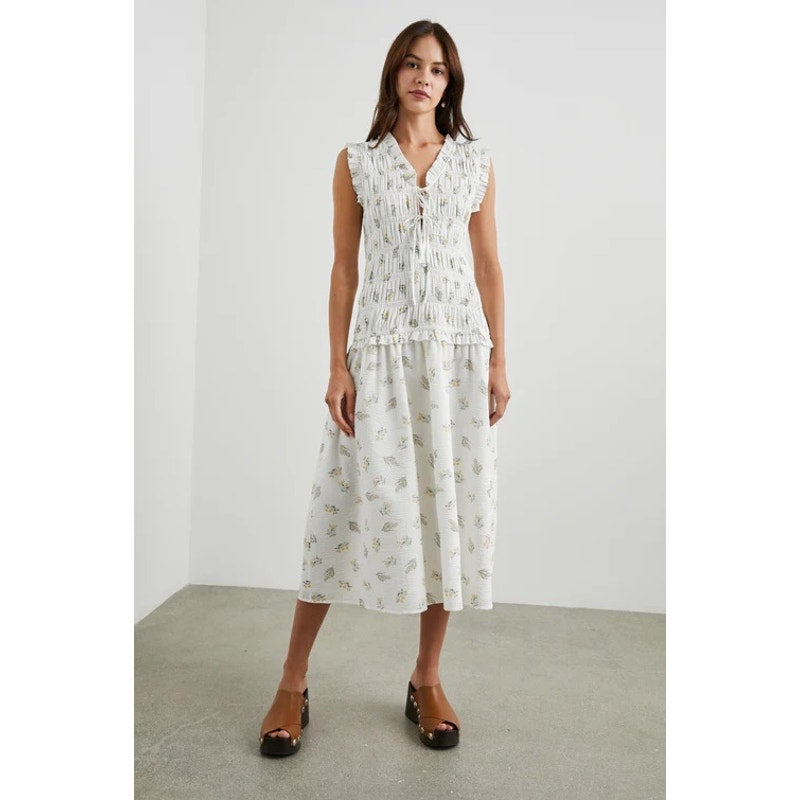 This dress is ready for the season. With a flattering silhouette that hugs in all the right places and a minimalistic flower print, catch yourself reaching for this style for every occasion. 100% Cotton.