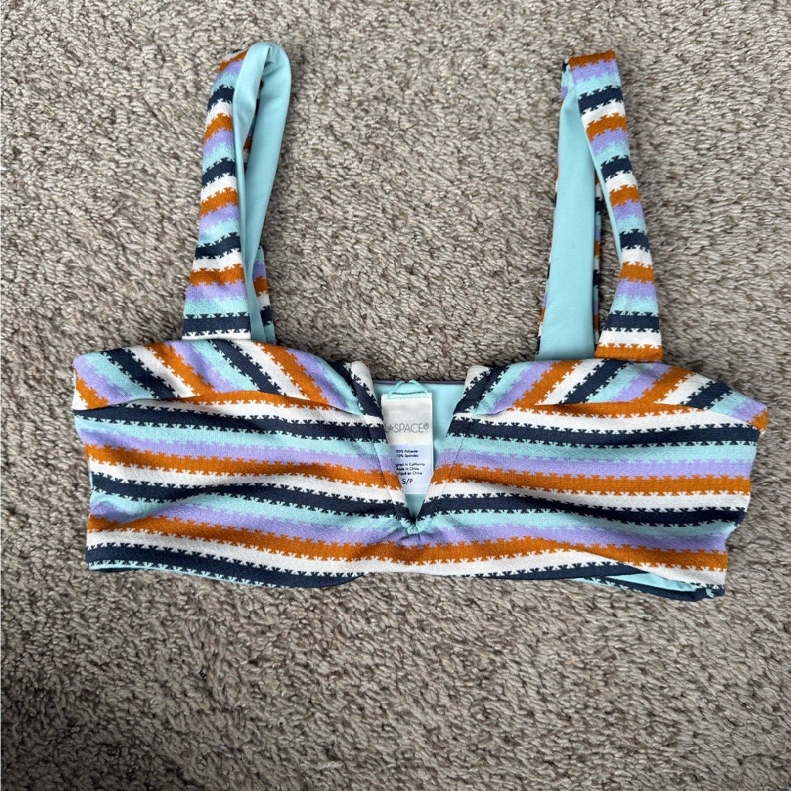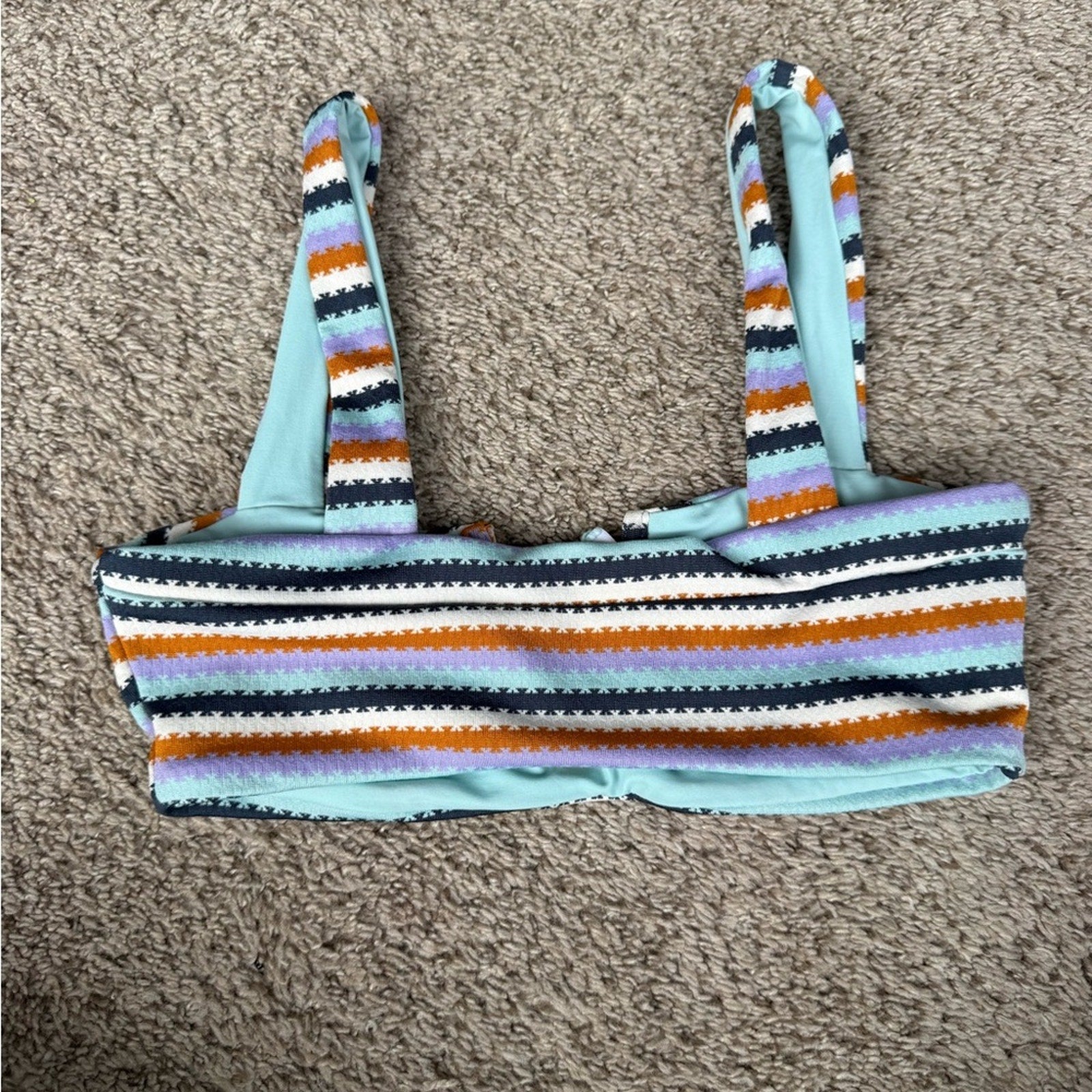 Stylish bikini top with vibrant stripes. Features a mix of colors for a bold look. The print reminds me of Missoni 🤩 this is new without tags. Never worn or washed.
