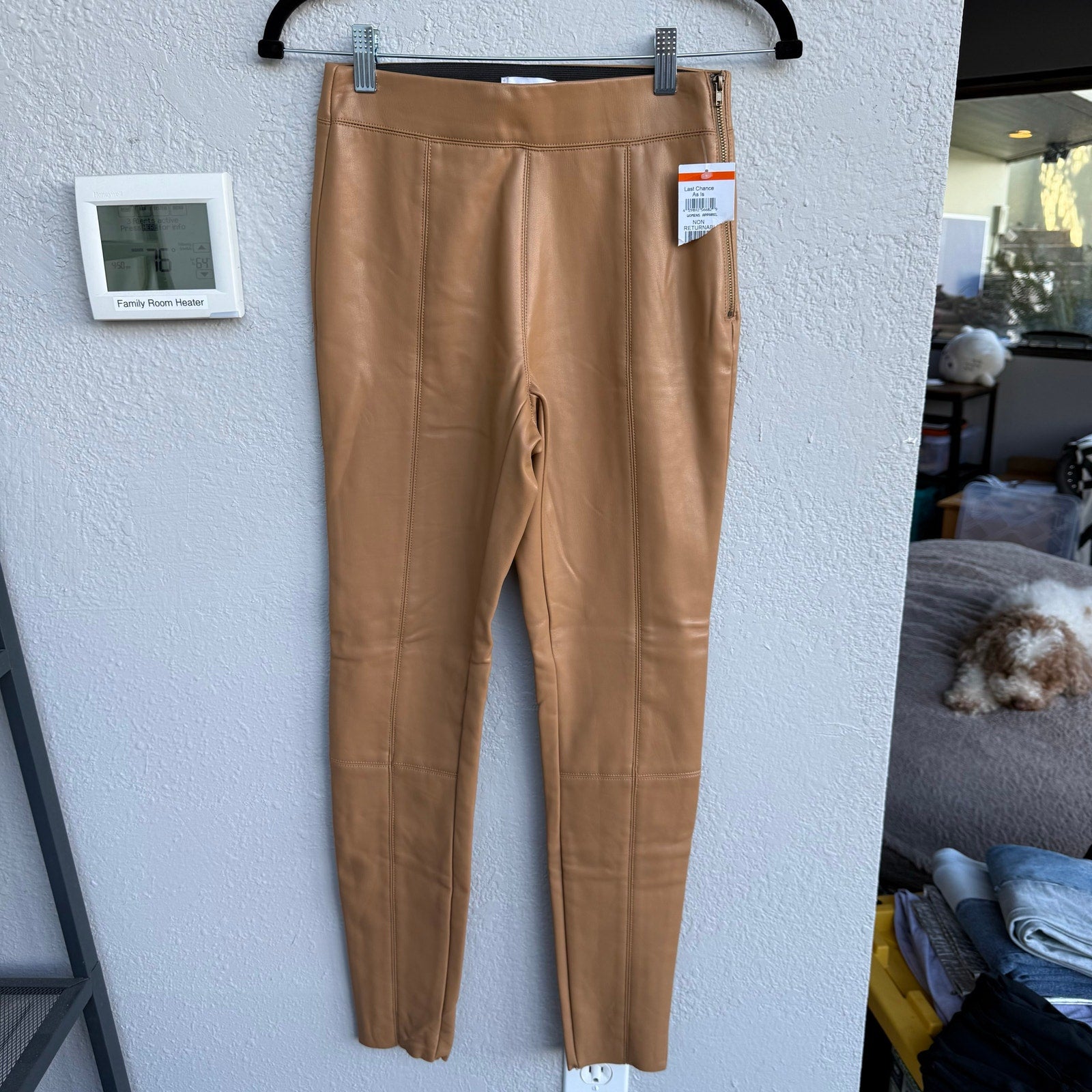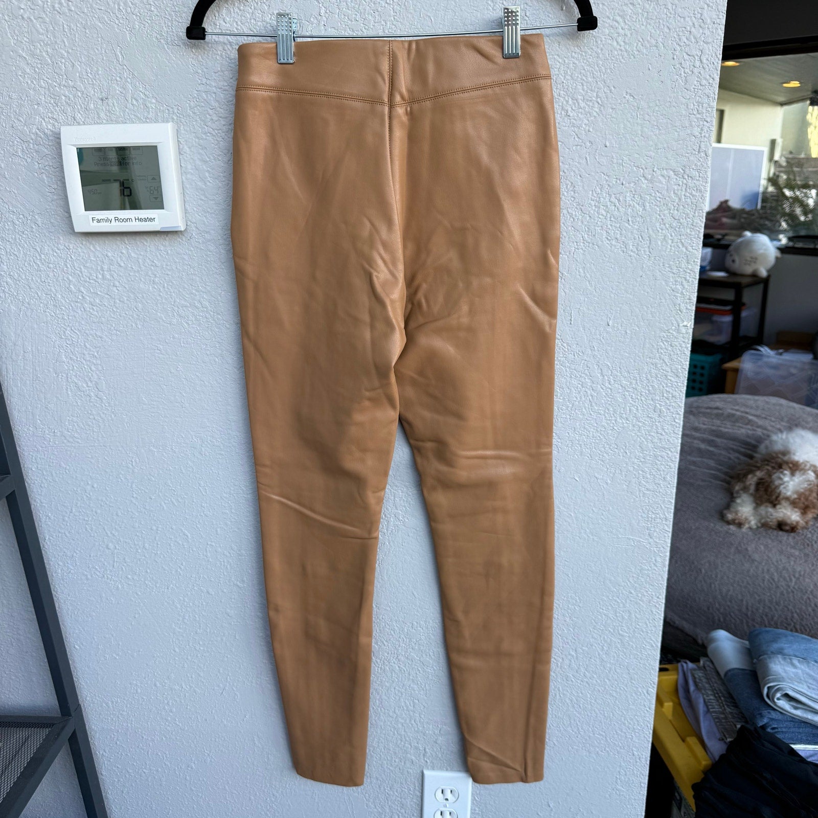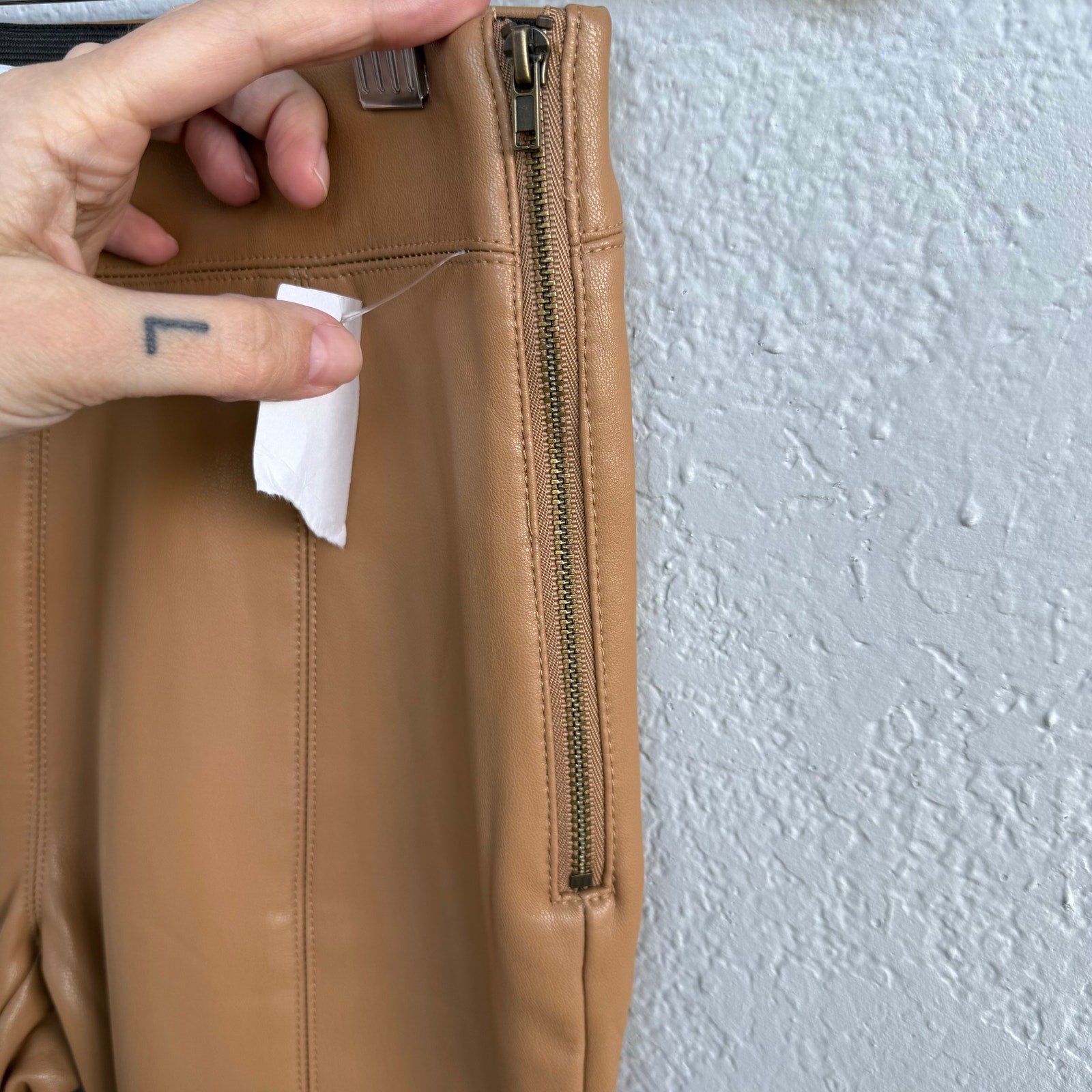 Topshop Genuine Leather Skinny Pants – Tan – Size 4 – Front Seam – Side Zipper
