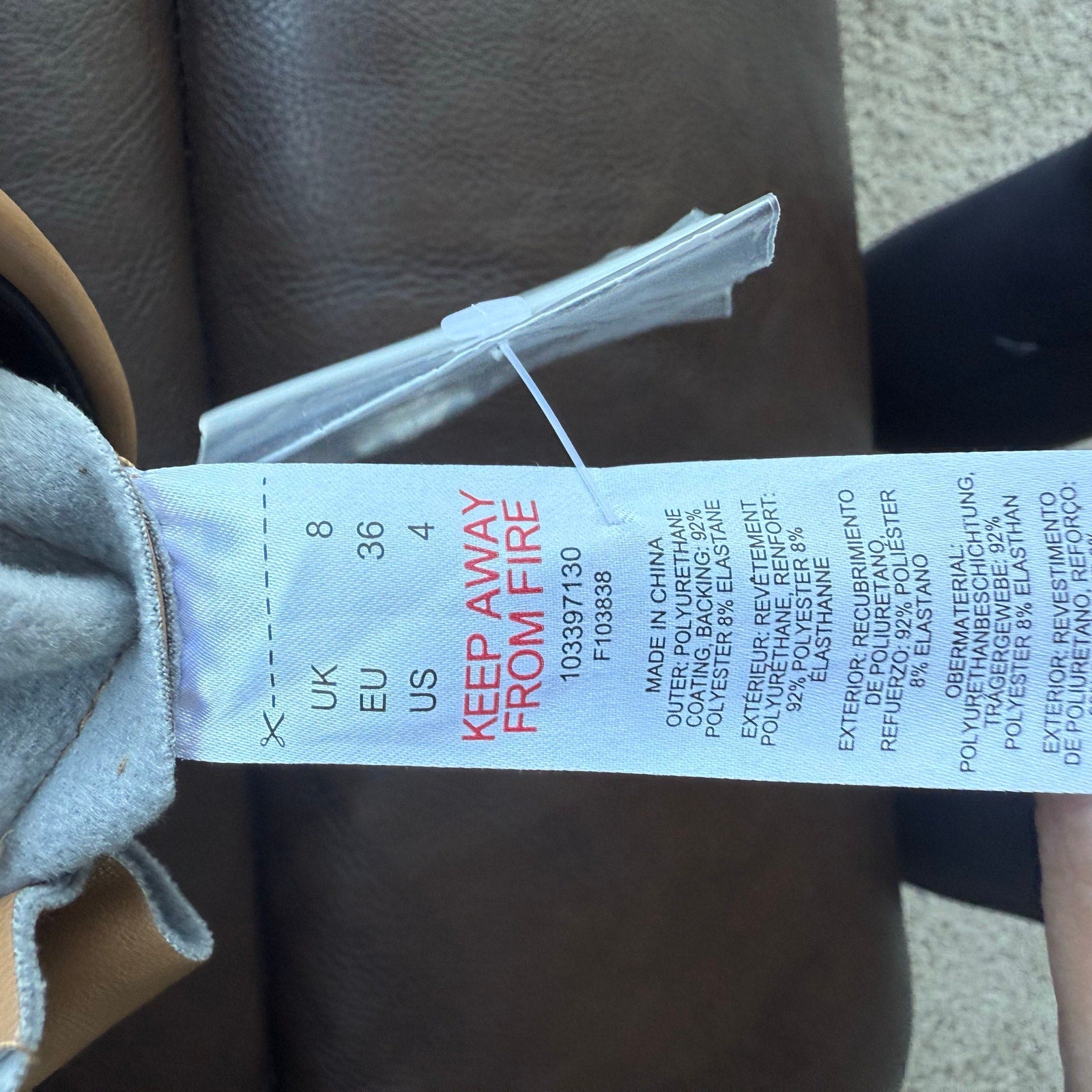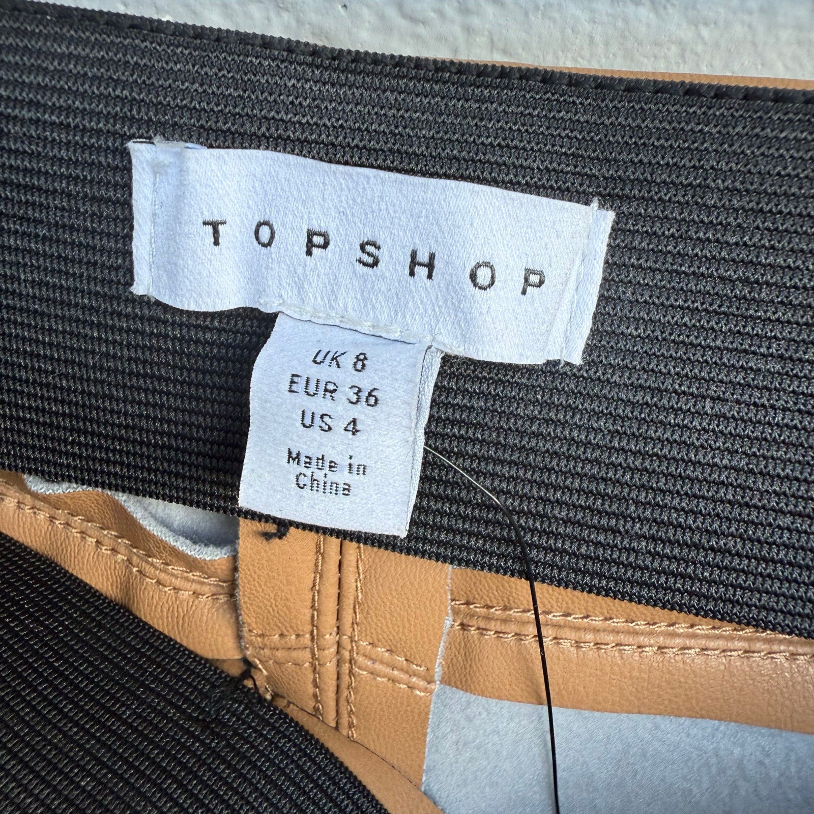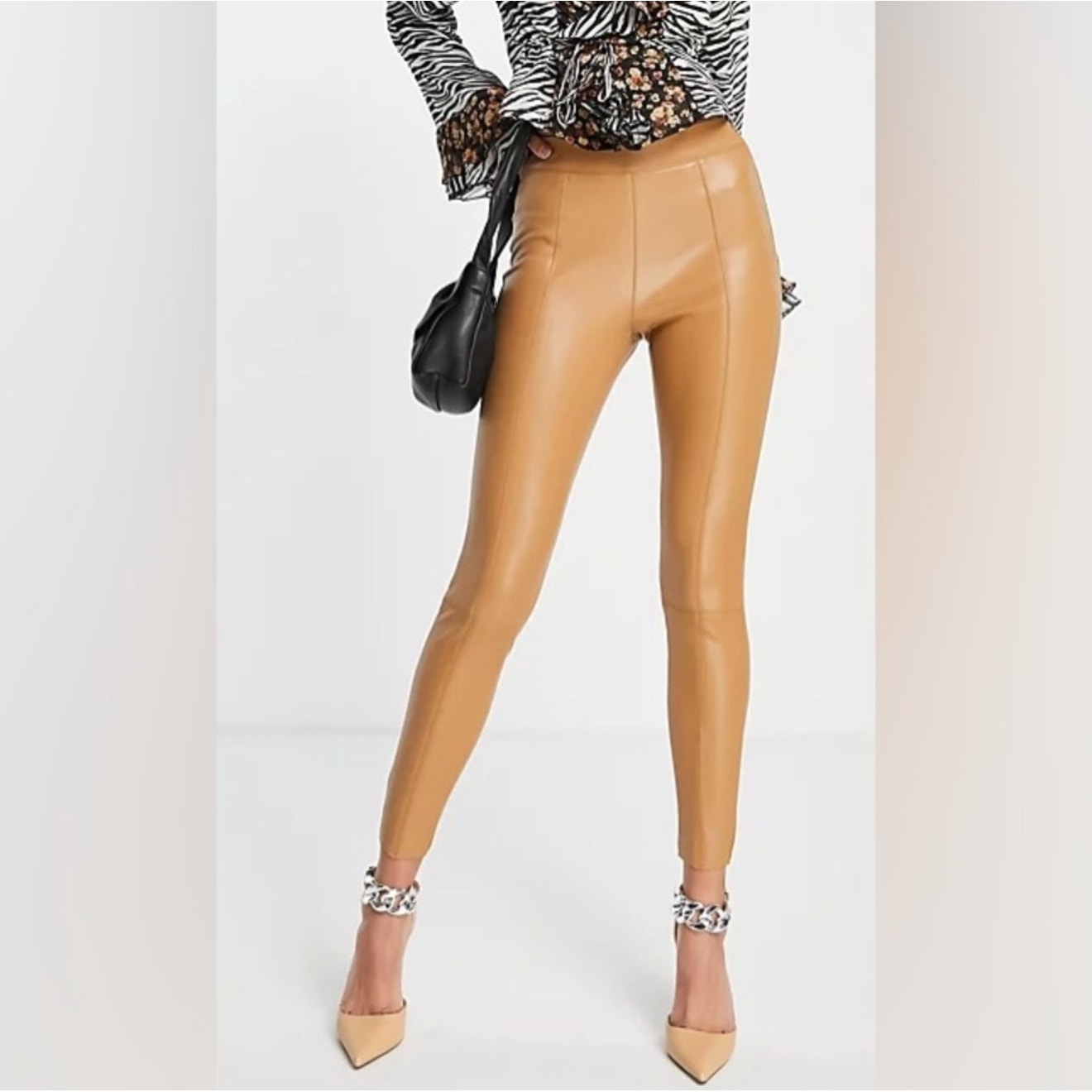 Elevate your wardrobe with these stunning Topshop faux leather skinny pants in a rich tan color. They feature a sleek front seam detail and a side zipper for a smooth, flattering fit.
