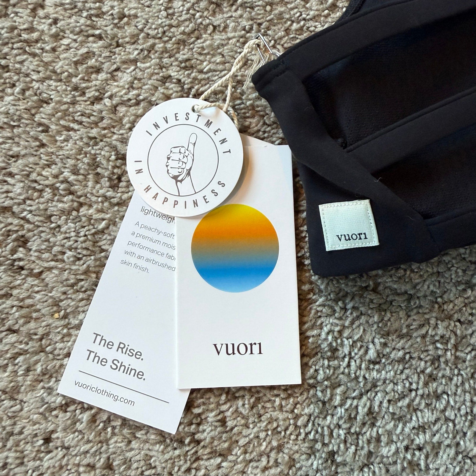 The Vuori Yosemite Bra in size medium is brand new with tags. Featuring a classic medium-cut front and a strappy back design, this black sports bra is ideal for activities like hiking, training, and travel. Made from 72% polyester and 28% elastane, its BreatheInterlock™ fabric offers four-way stretch, moisture-wicking properties, smooth coverage, and a soft, peachy feel with an airbrushed finish. It provides light support, making it suitable for low-impact workouts. MSRP $58.