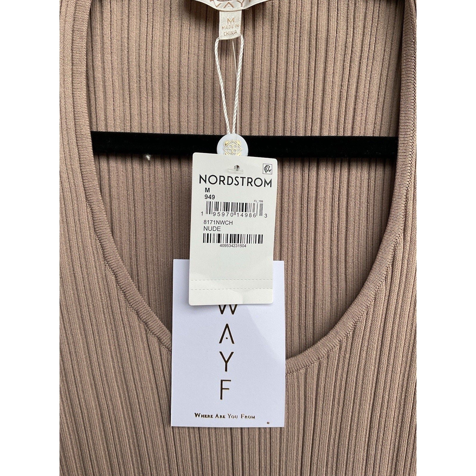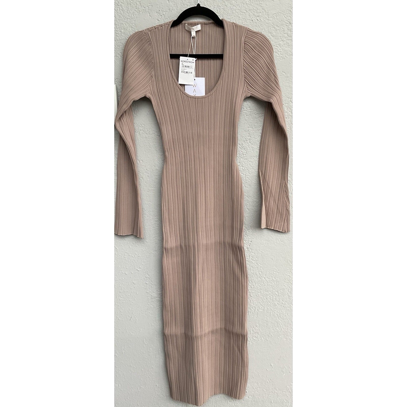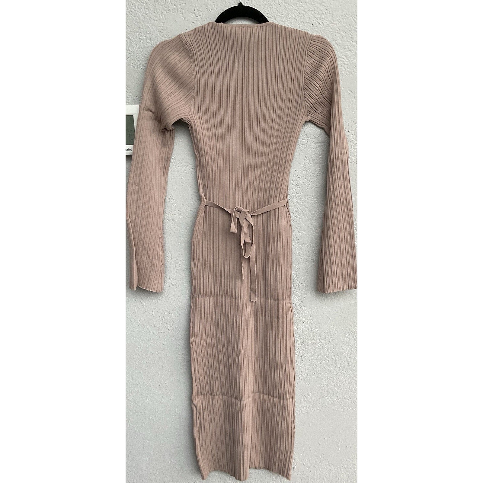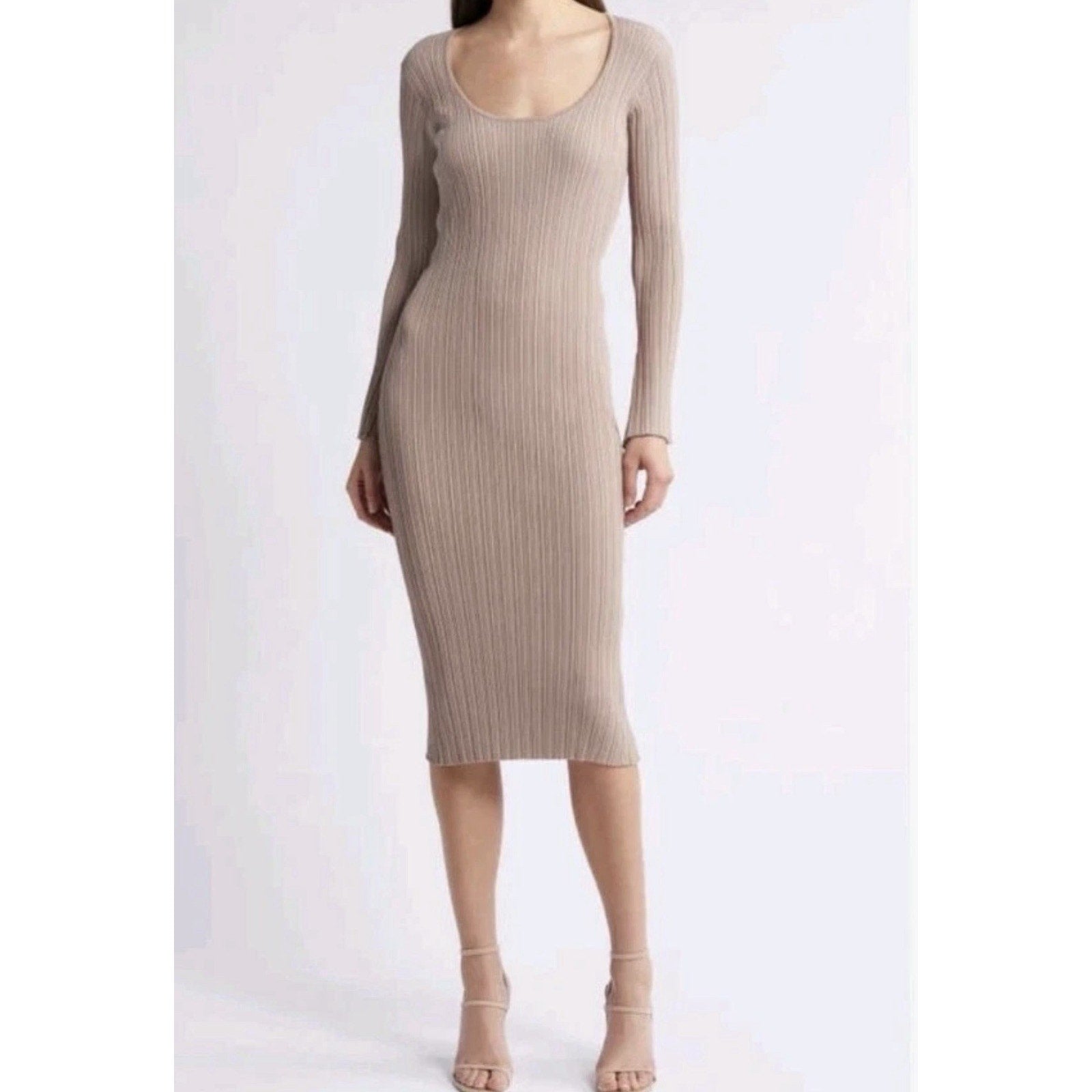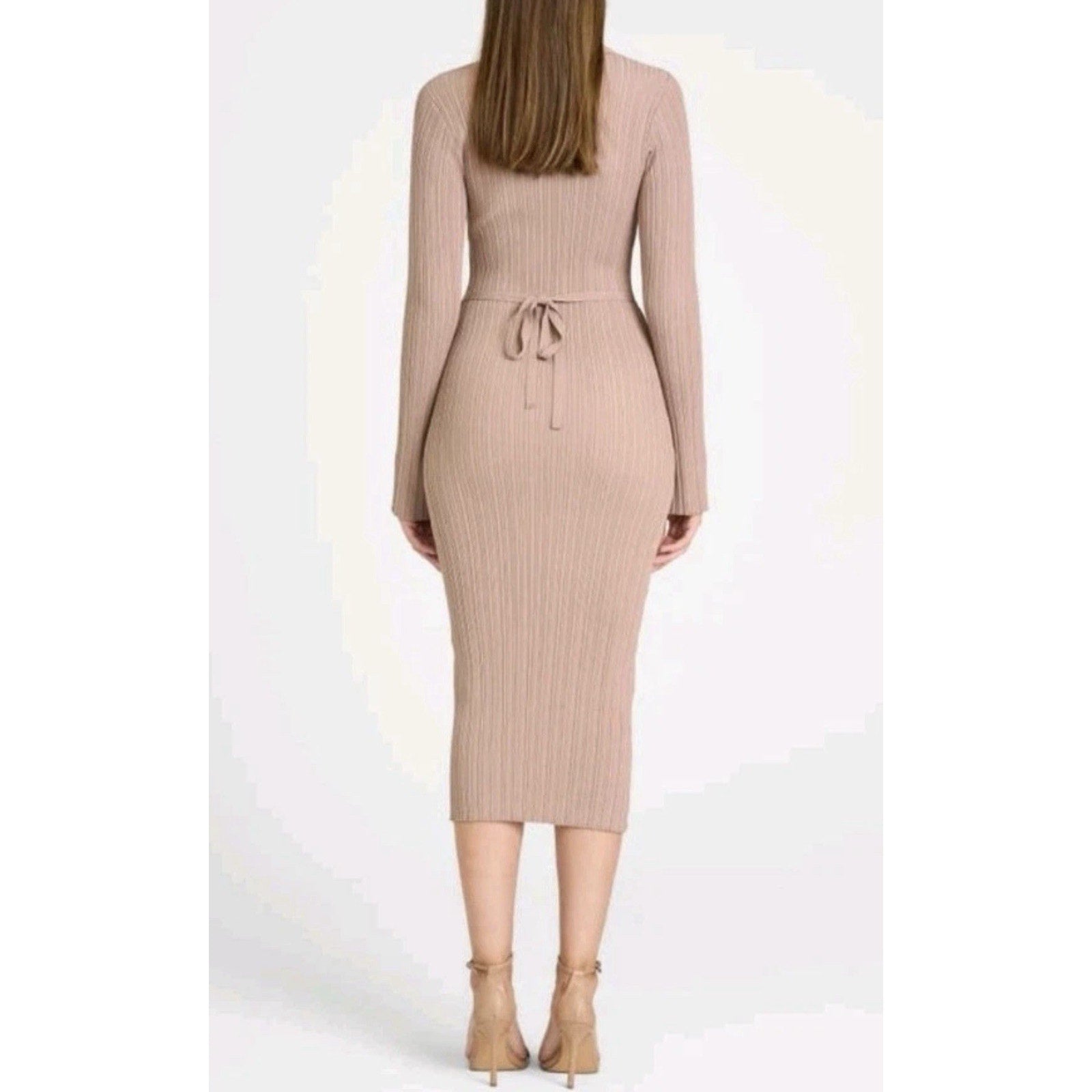 WAYF ALEXI Long Sleeve Ribbed Belt Midi Beige Dress - M - New With Tag -MSRP $99