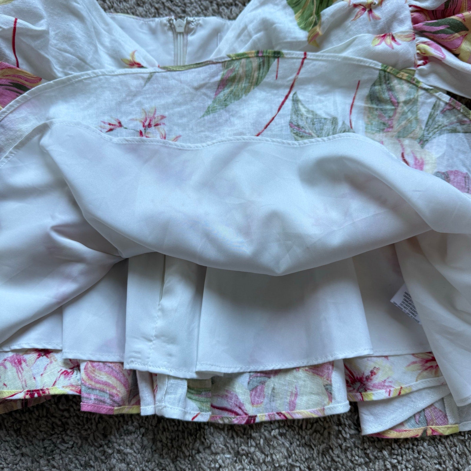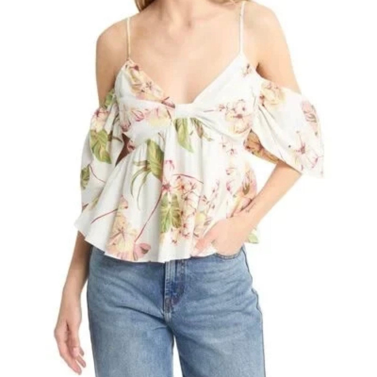 WAYF $128 Coco Floral Print Cold Shoulder Top in Ivory Tropical Large Nwot
