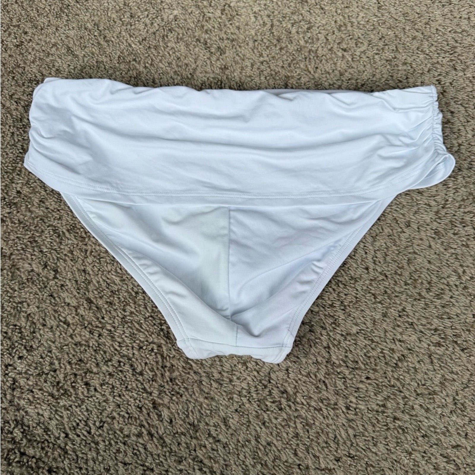 Elegant and comfortable white swim bottom perfect for beach days. Enjoy a stylish and flattering fit. Never worn or washed.